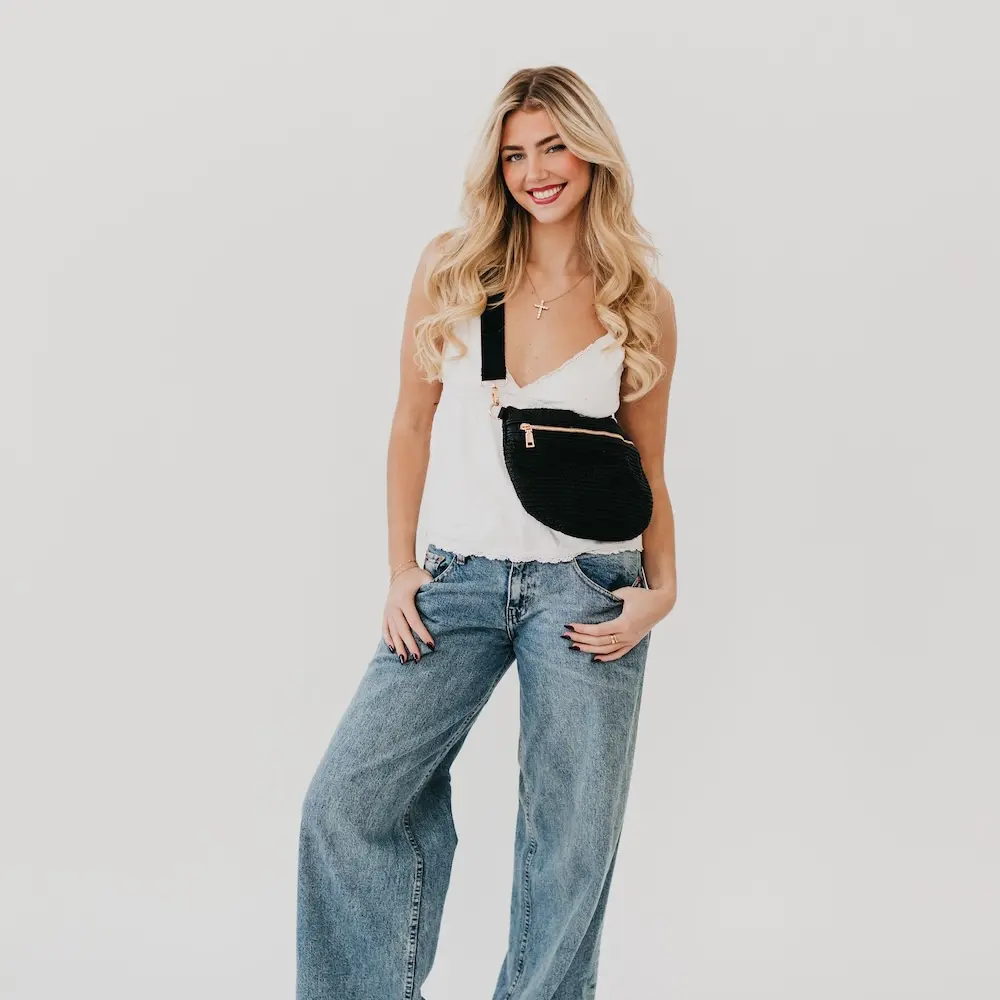 Elevate your accessory game with the Rachel Raffia Bum Bag, combining practicality with a chic look.