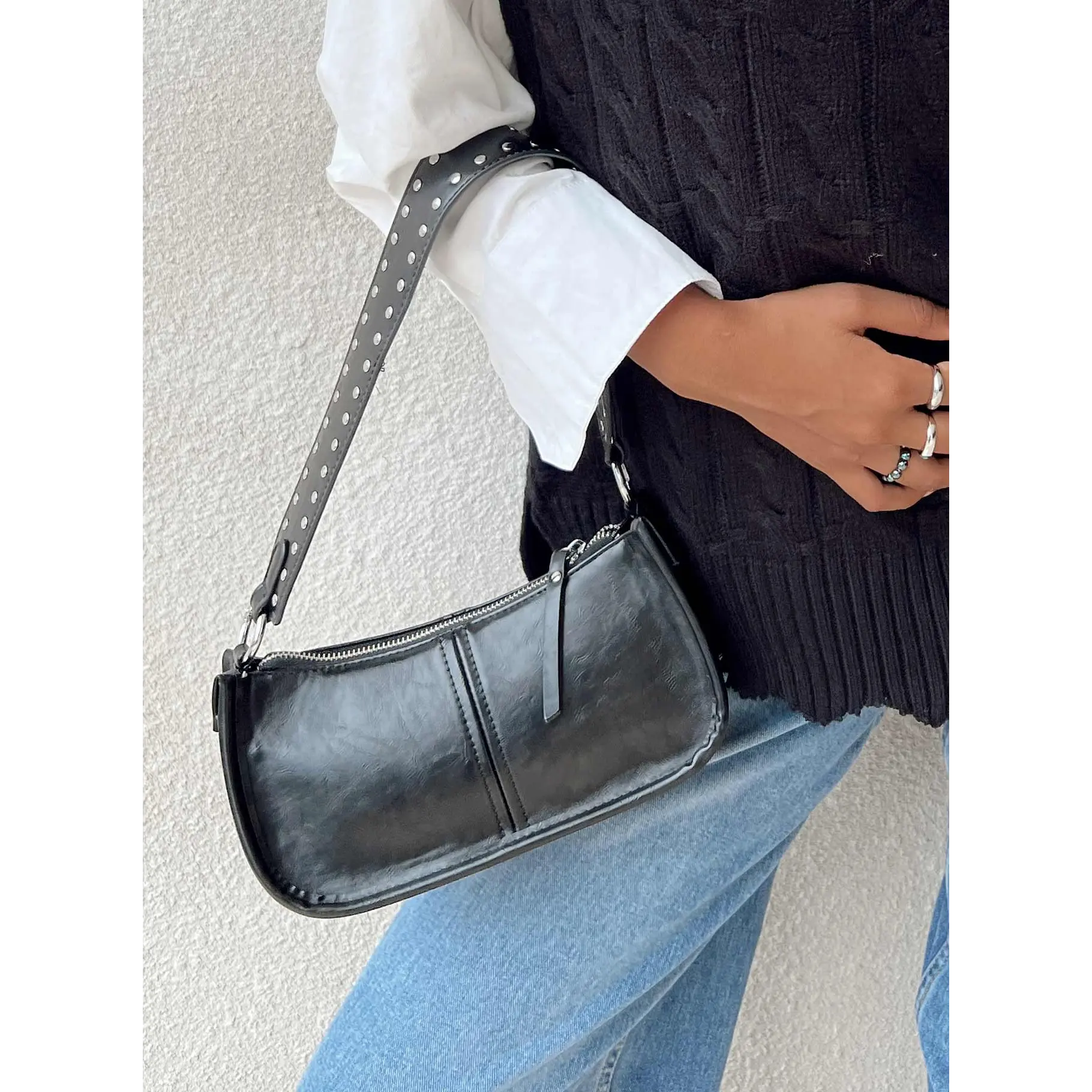 Studded Strap Faux Leather Bag