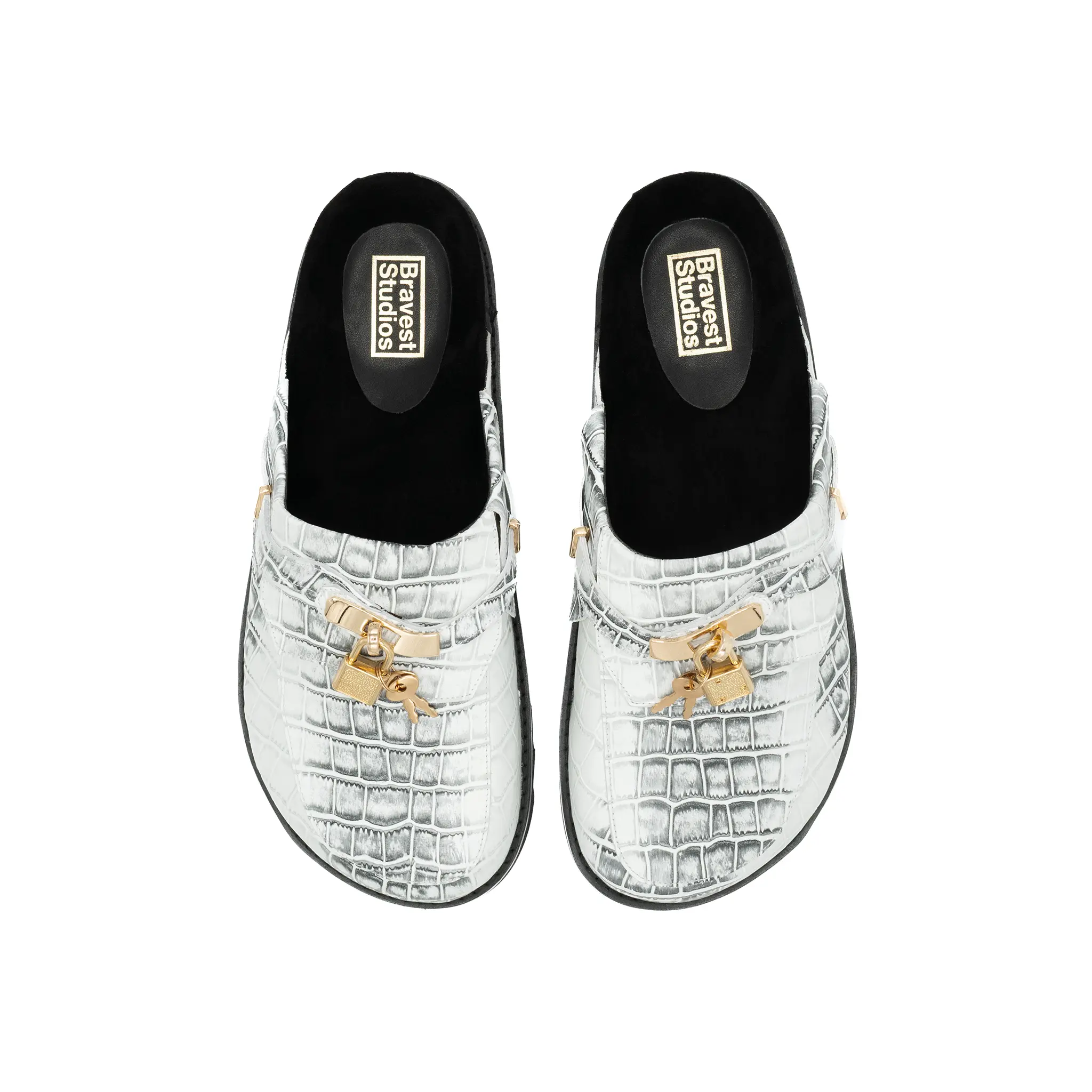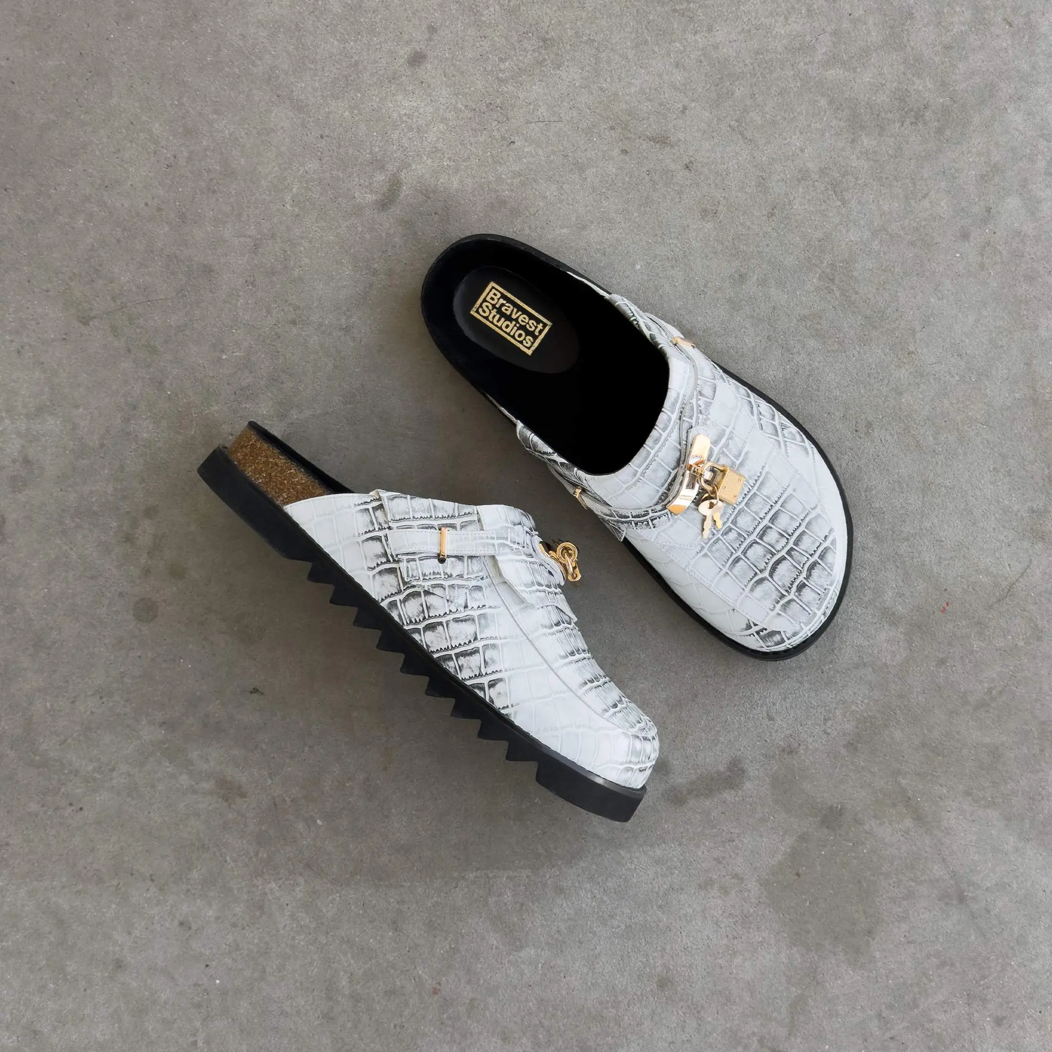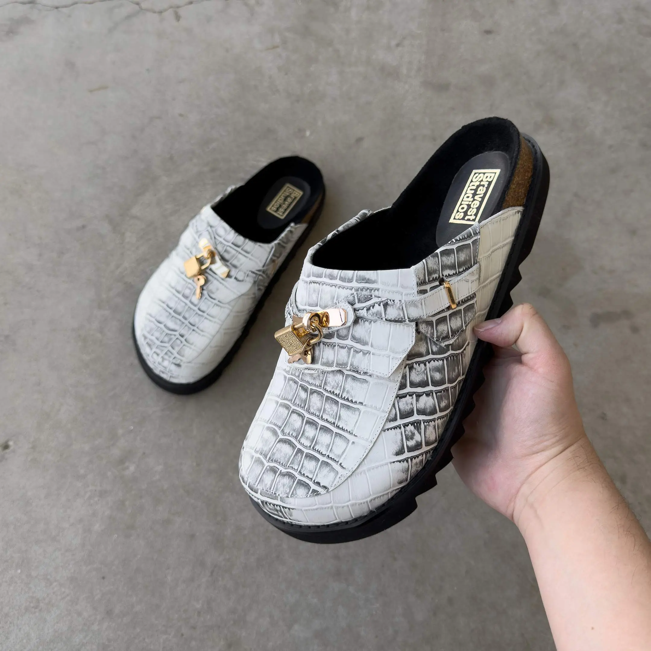 5. White Snakeskin Bag Clogs
