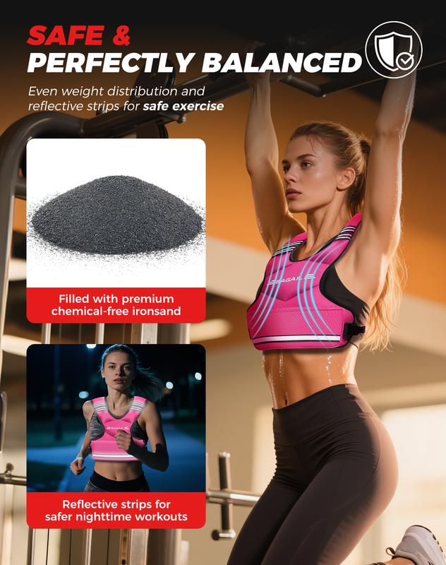 The BAGAIL Adjustable Weighted Vest is perfect for women and men. It offers 4-10lb, 12-18lb, and 20-32lb options. The vest includes 6 weights and a large pocket. Ideal for home workouts, running, walking, and strength training. Stay focused on your fitness goals with this versatile vest.