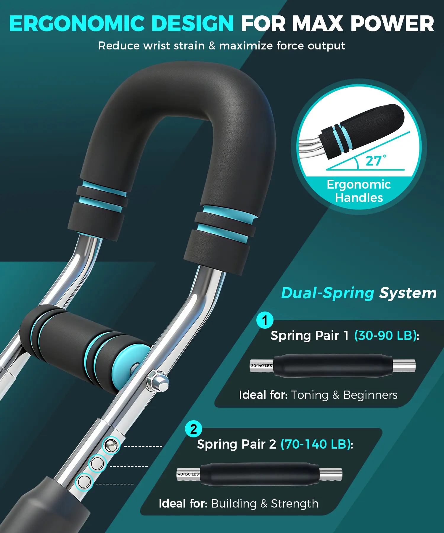 5. 【SpringStatements】BAGAIL Twister Arm Trainer 5-Level Resistance 40-130 lbs for Chest & Arm Workout Home Gym Strength Training Equipment with Ergonomic Grips & Carry Bag for Men and Women Adjustable Exercise Machine