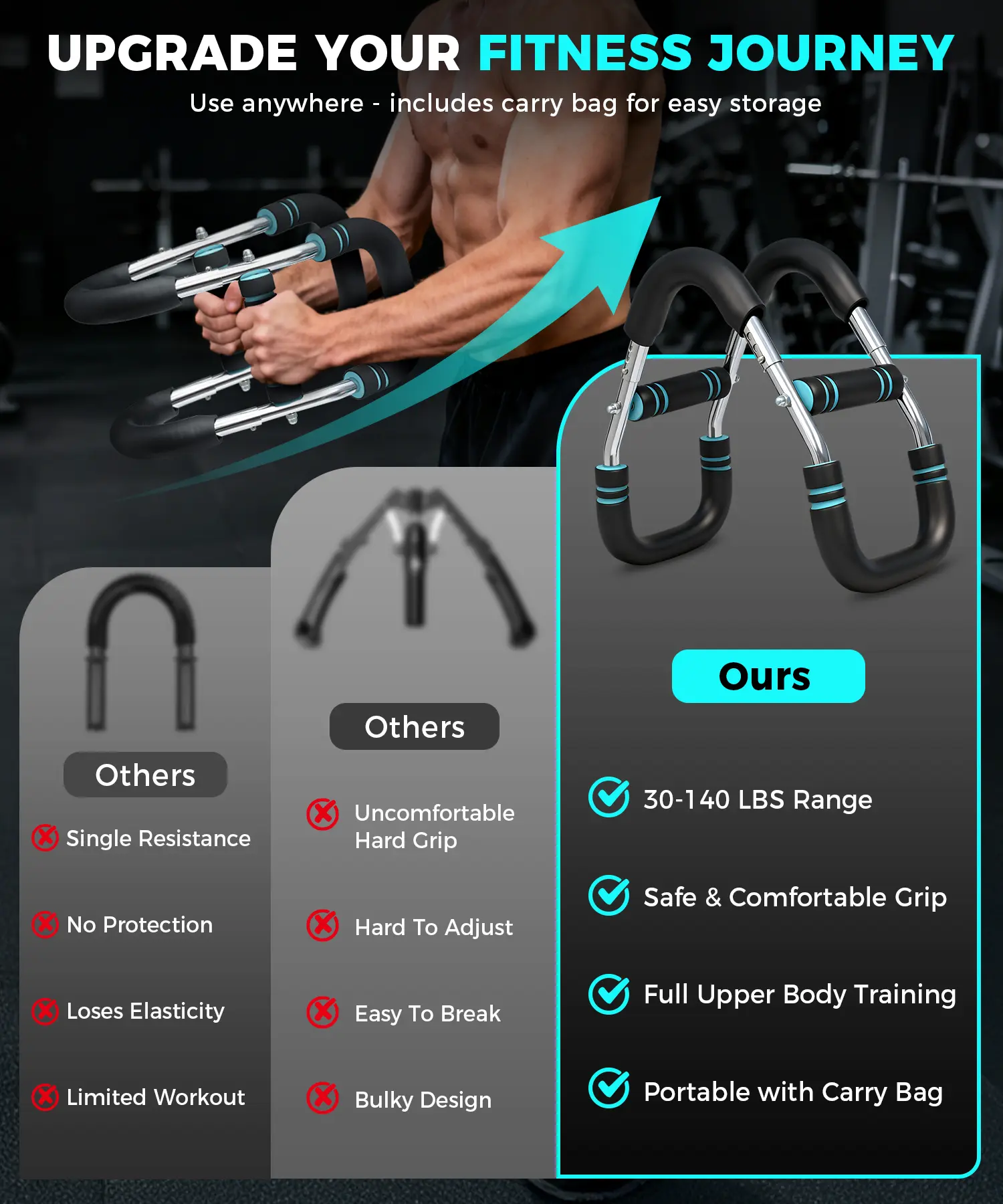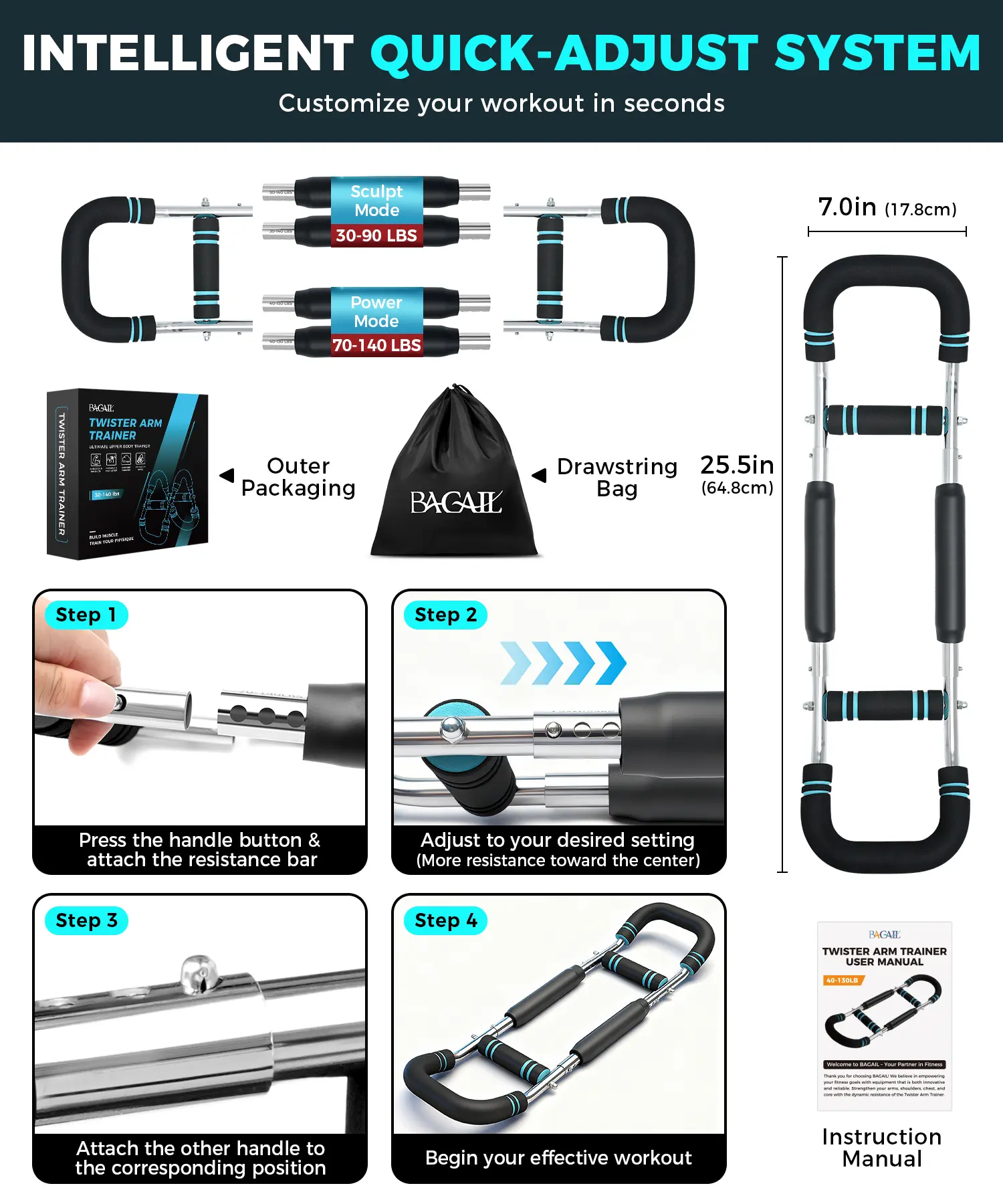 【SpringStatements】BAGAIL Twister Arm Trainer 5-Level Resistance 40-130 lbs for Chest & Arm Workout Home Gym Strength Training Equipment with Ergonomic Grips & Carry Bag for Men and Women Adjustable Exercise Machine