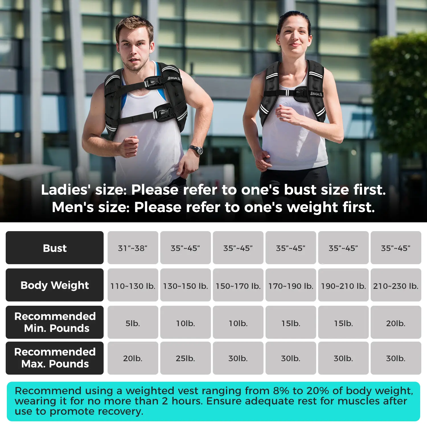 Best is 20lbs should be 10% of your weight go ahead and buy yall!!! Great way too loose weight and go on walks with!! Highly recommend