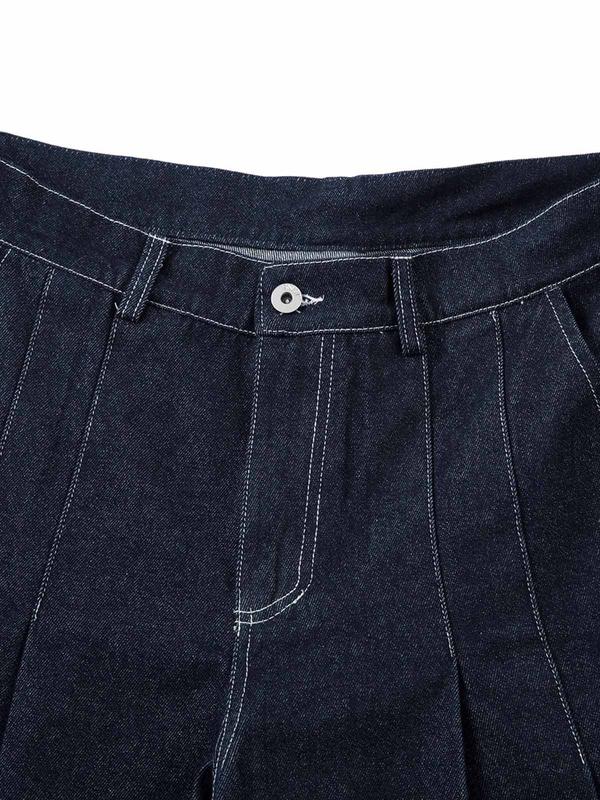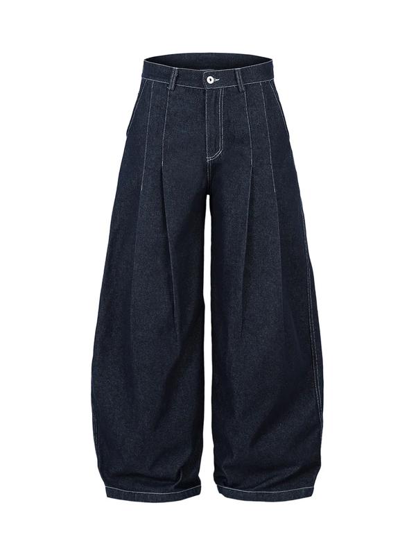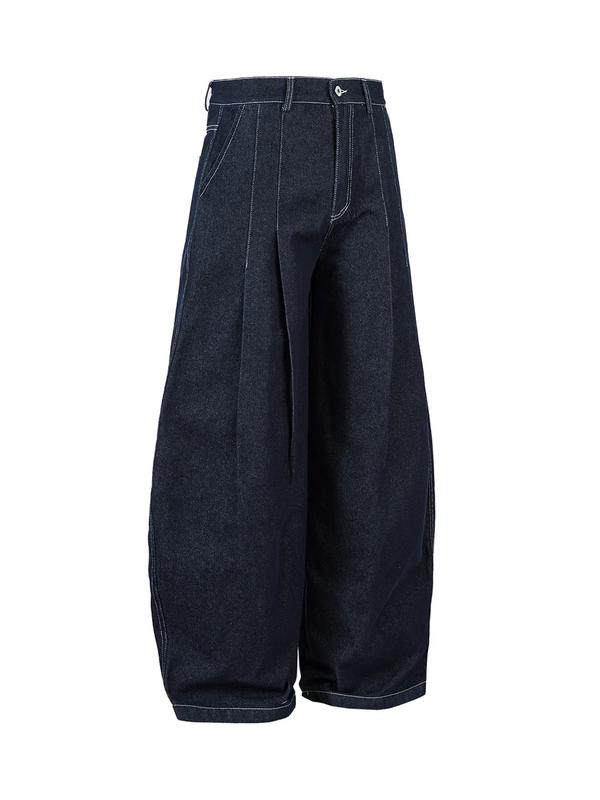 5. Thesupermade Deconstructed Contrast Stitching Pleated Baggy Barrel Jeans