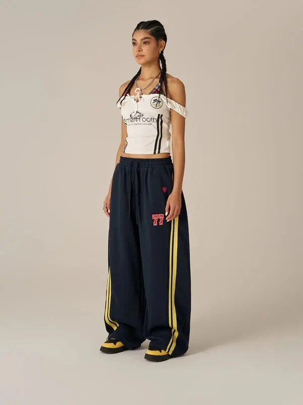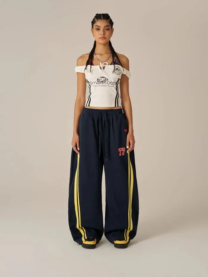 ·Loose legs and subtle stripe details bring comfort and style—perfect for pairing with cropped tops or hoodies when hanging out or grabbing lunch with friends