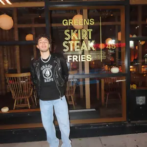 The overall silhouette is intentionally wide for a streetwear look.