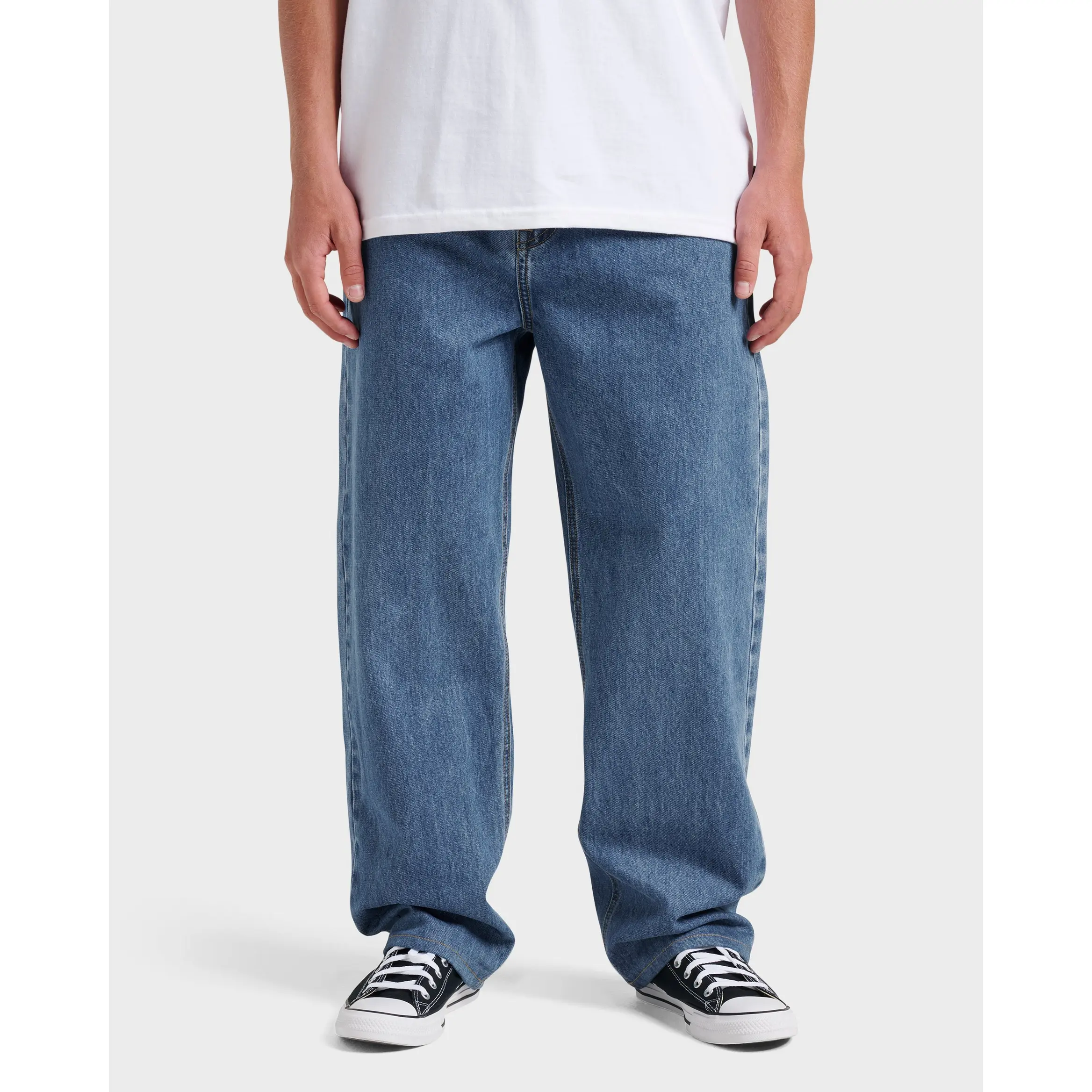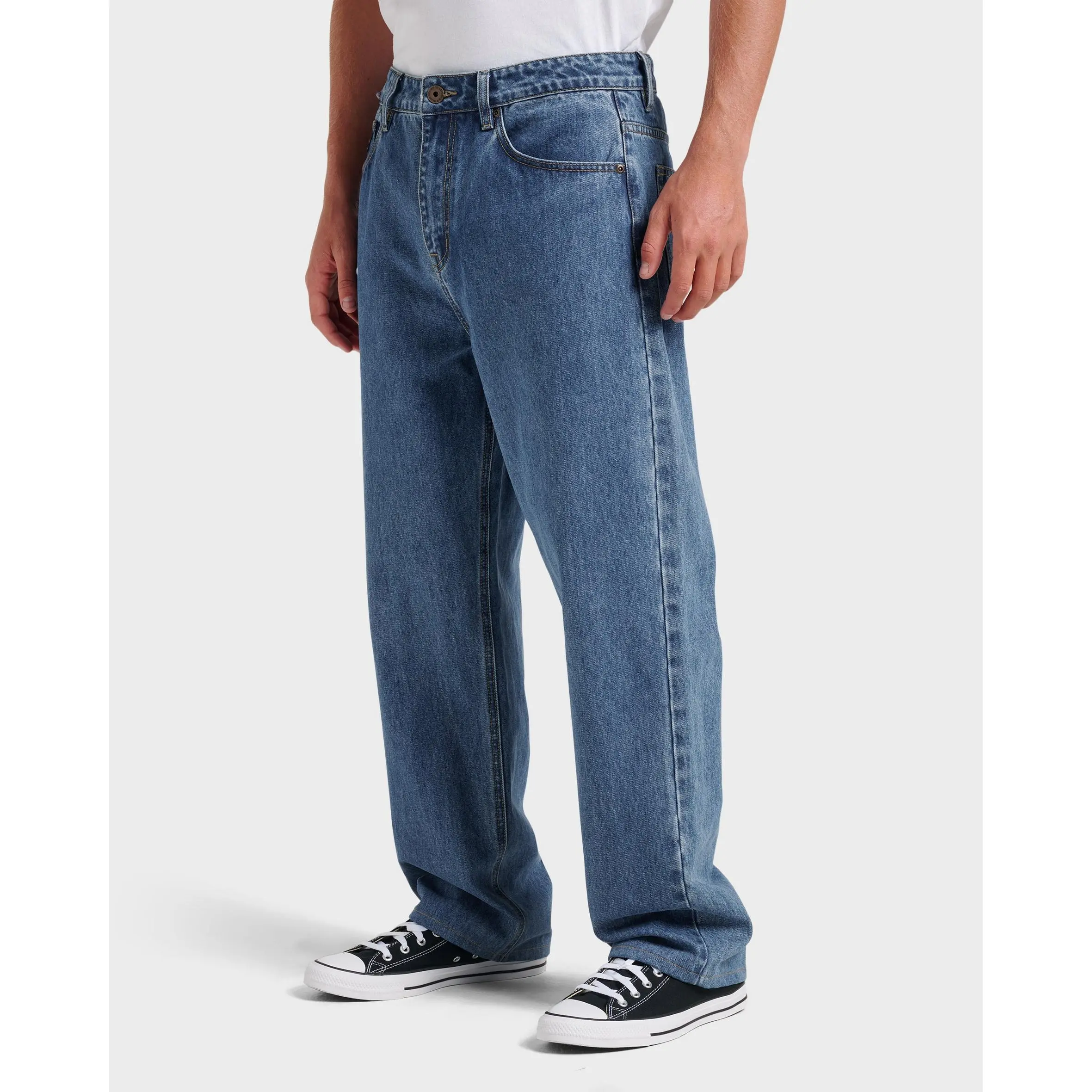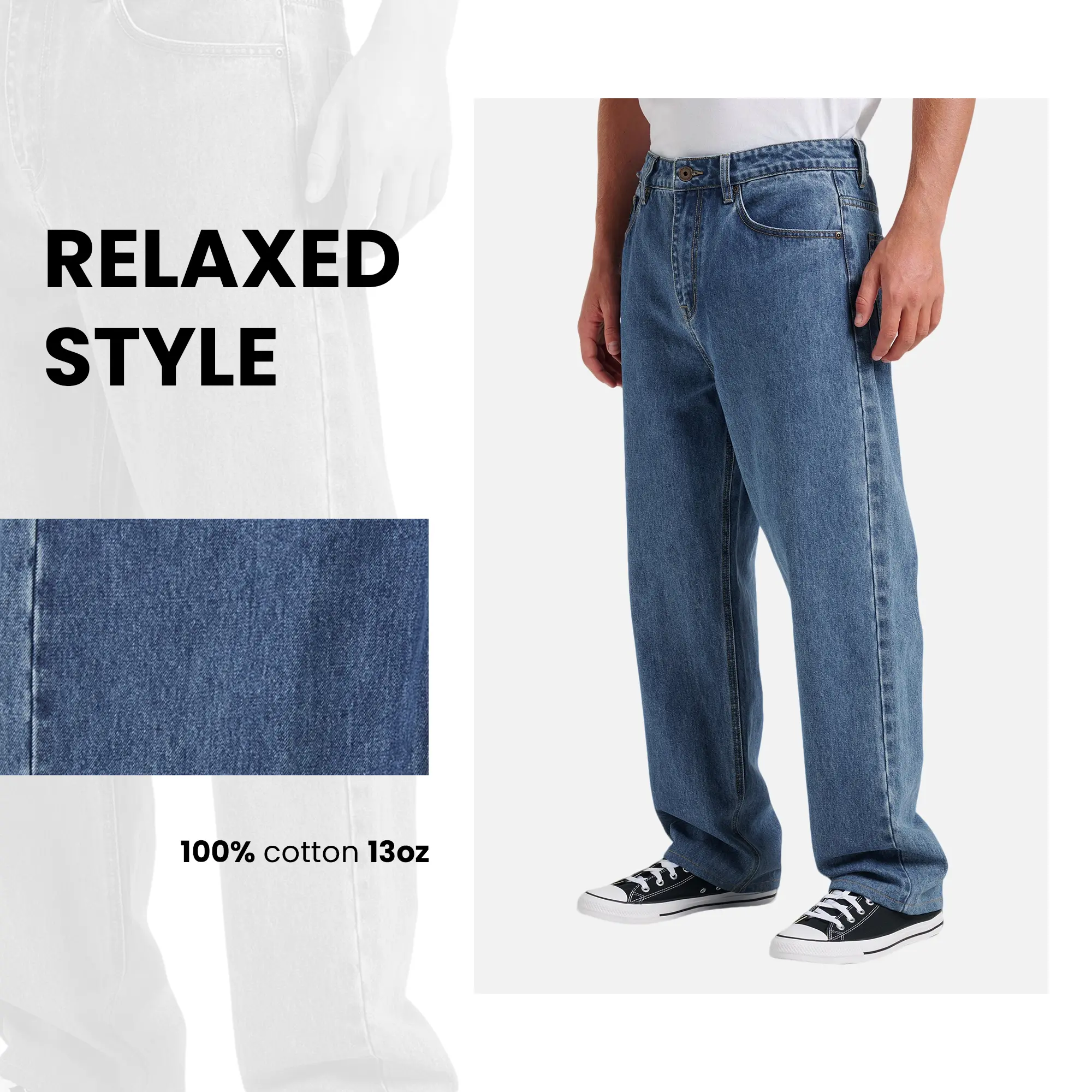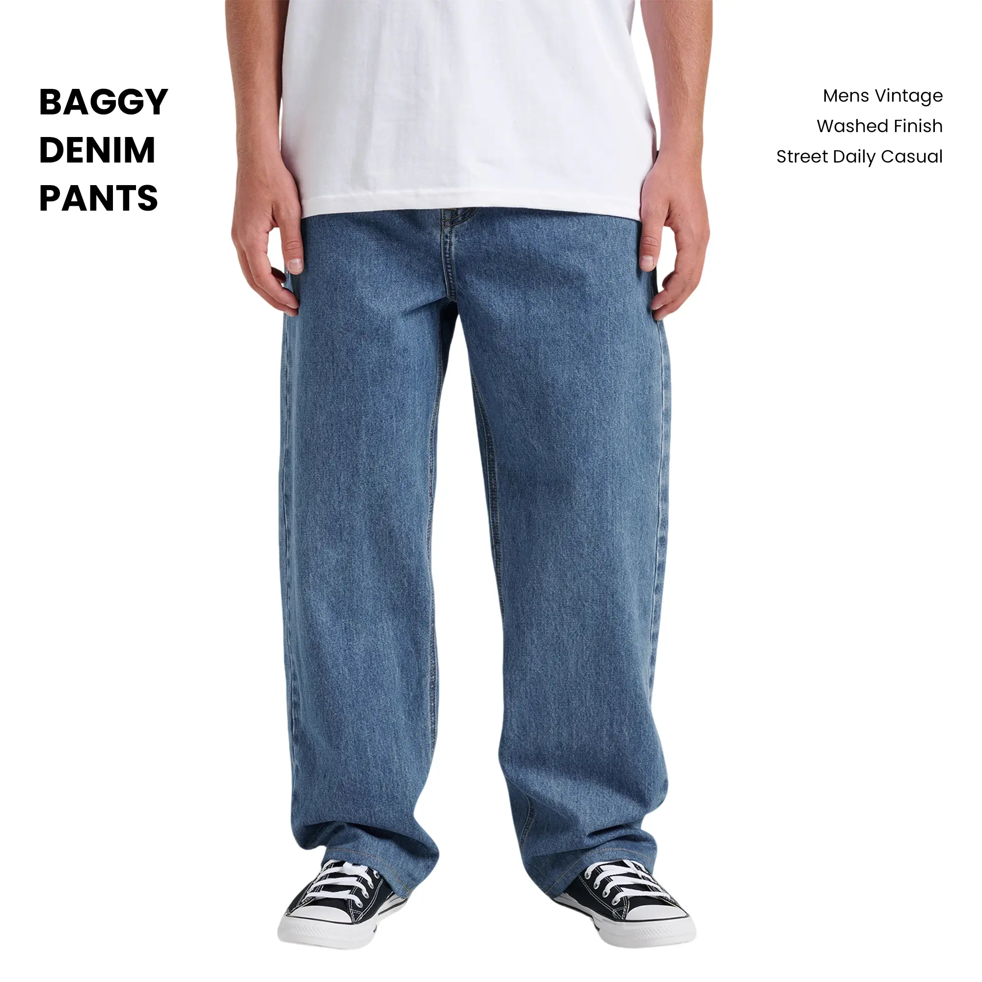 Our Baggy Denim Jeans Pants are the ultimate in relaxed style with a 29.5 inch inseam and roomy baggy fit. Made from heavyweight 13oz 100% cotton black denim, this 5 pocket pant features a cool denim wash finish and diamond label branding on the pockets. A perfect blend of comfort and casual street style. Featured here in the Medium Indigo colorway.