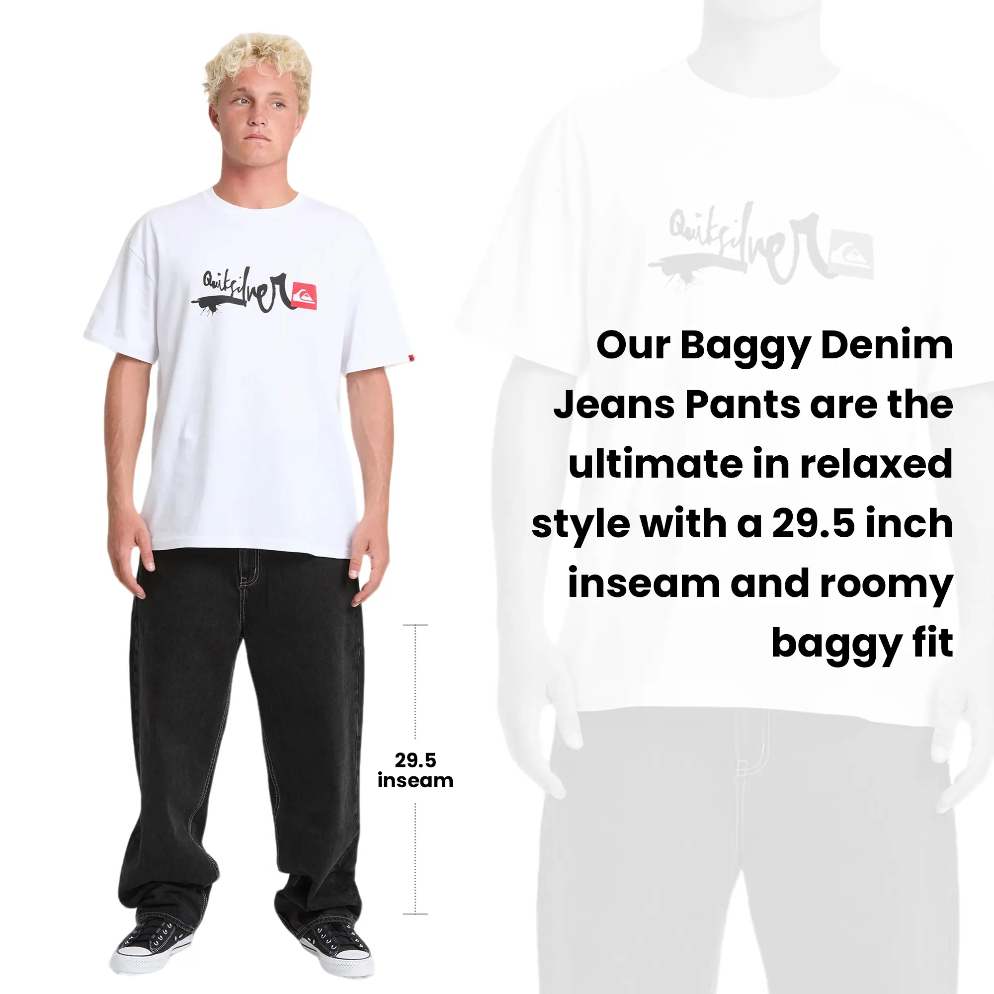 Quiksilver | Baggy Denim Pants | 13oz 100% Cotton Denim Jeans | 29.5 inseam | Mens Vintage Washed Finish Street Daily CasualQuiksilver | Baggy Denim Pants | 13oz 100% Cotton Denim Jeans | 29.5 inseam | Mens Vintage Washed Finish Street Daily Casual