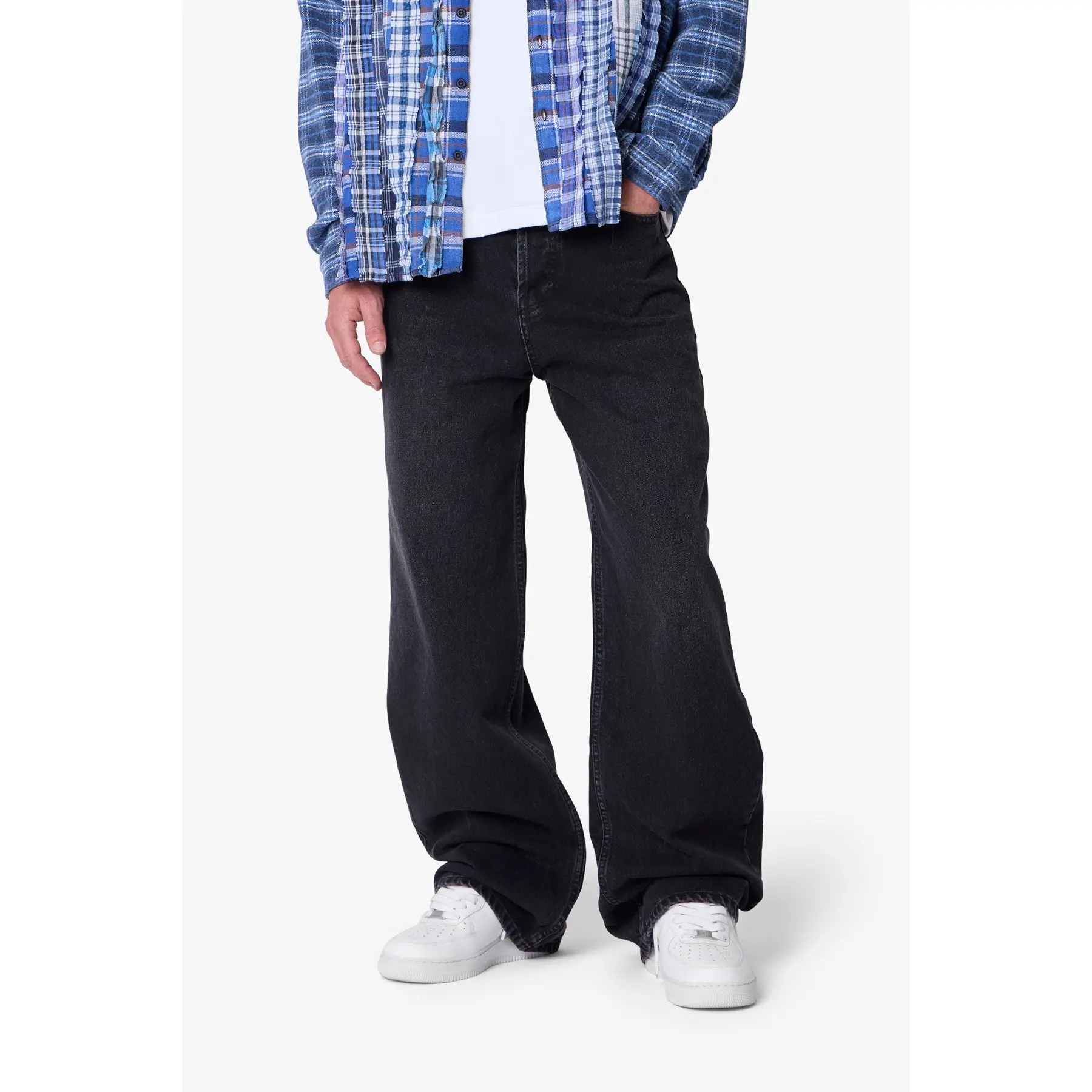 Constructed from 100% cotton denim with a stone wash finish, the Baggy Denim features a loose silhouette with light sanding throughout. Designed with a classic 5-pocket configuration, belt loops, and a button fly closure.