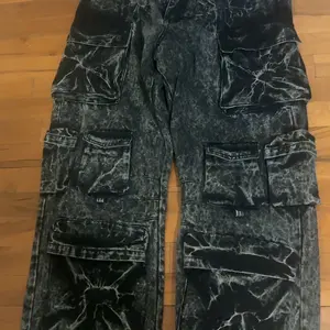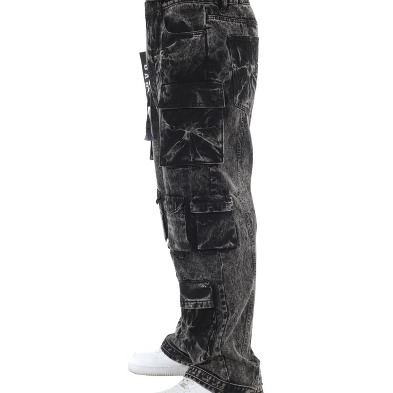 8 Pocket Black Acid Wash Baggy