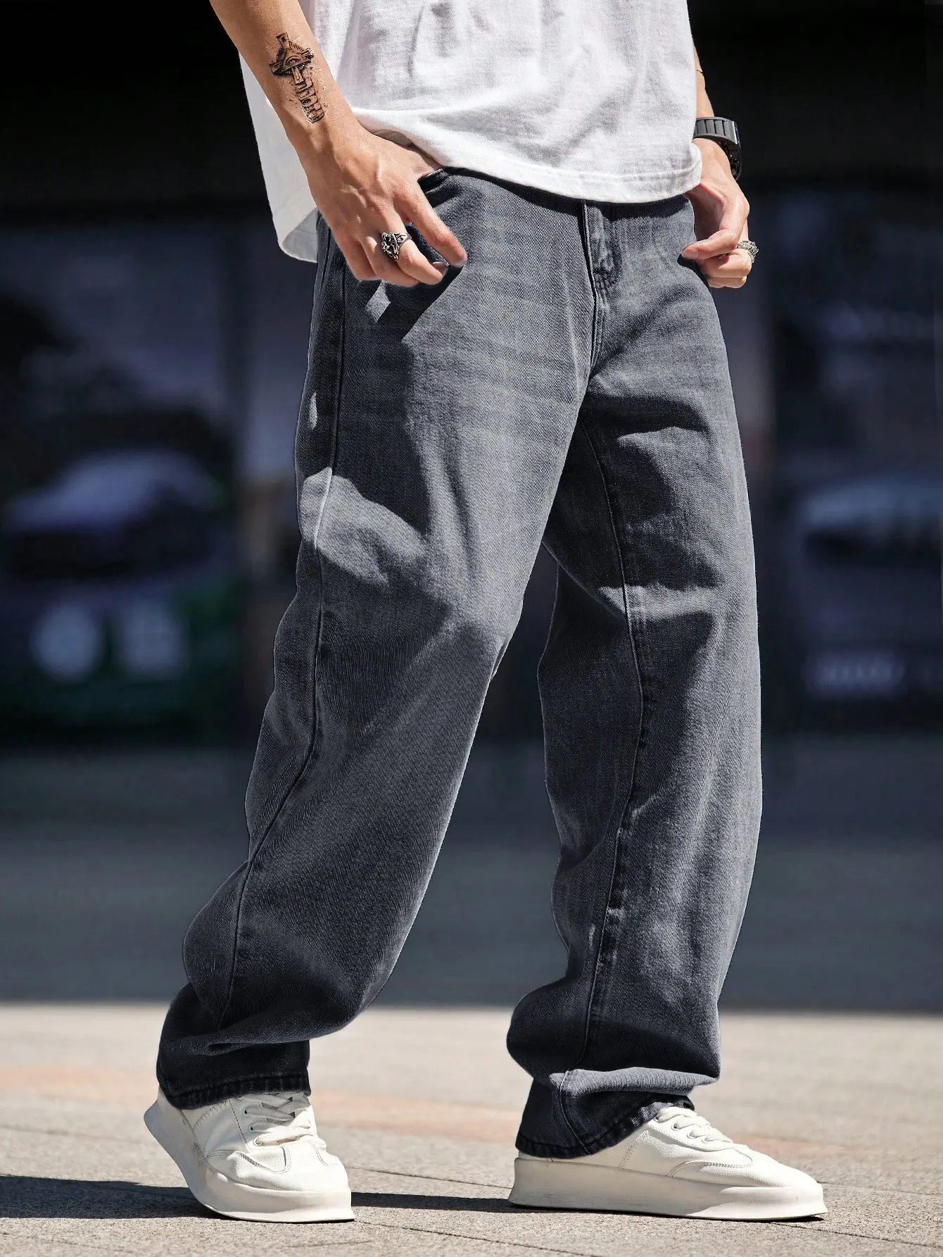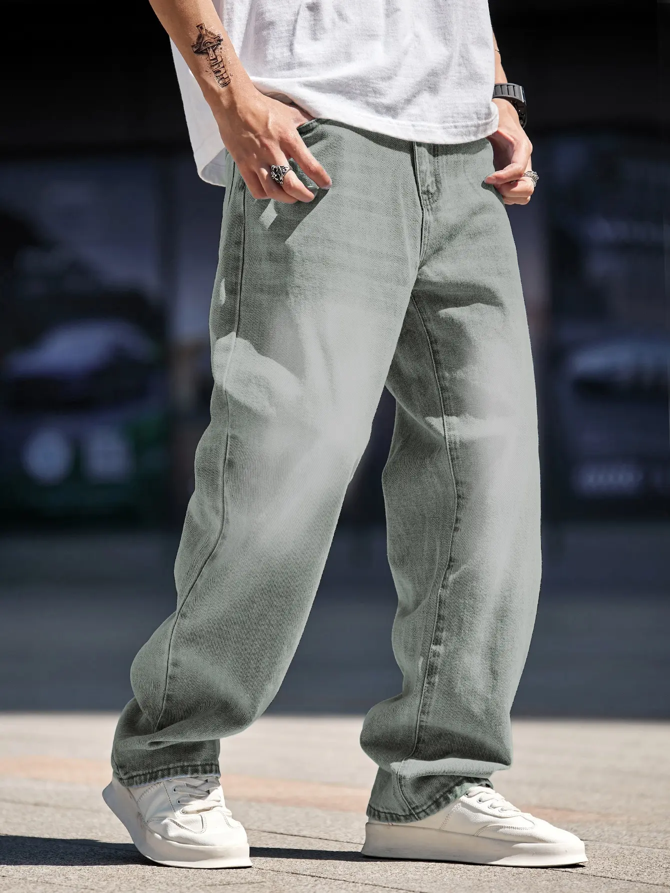 High Waist Spring To Summer Loose Jeans Fall Baggy Straight Leg Denim Pants Trousers