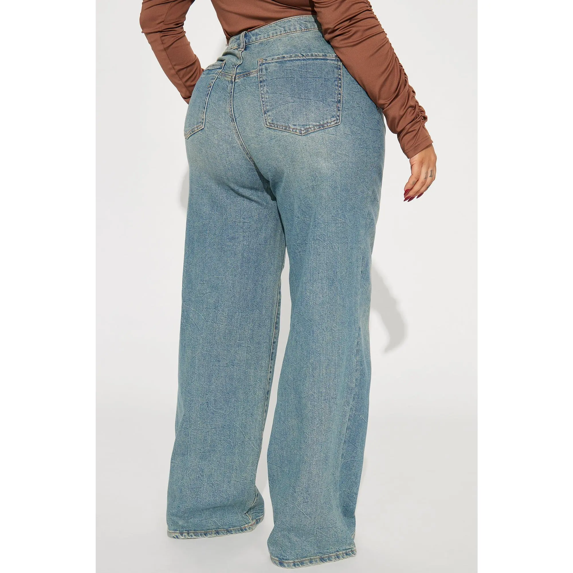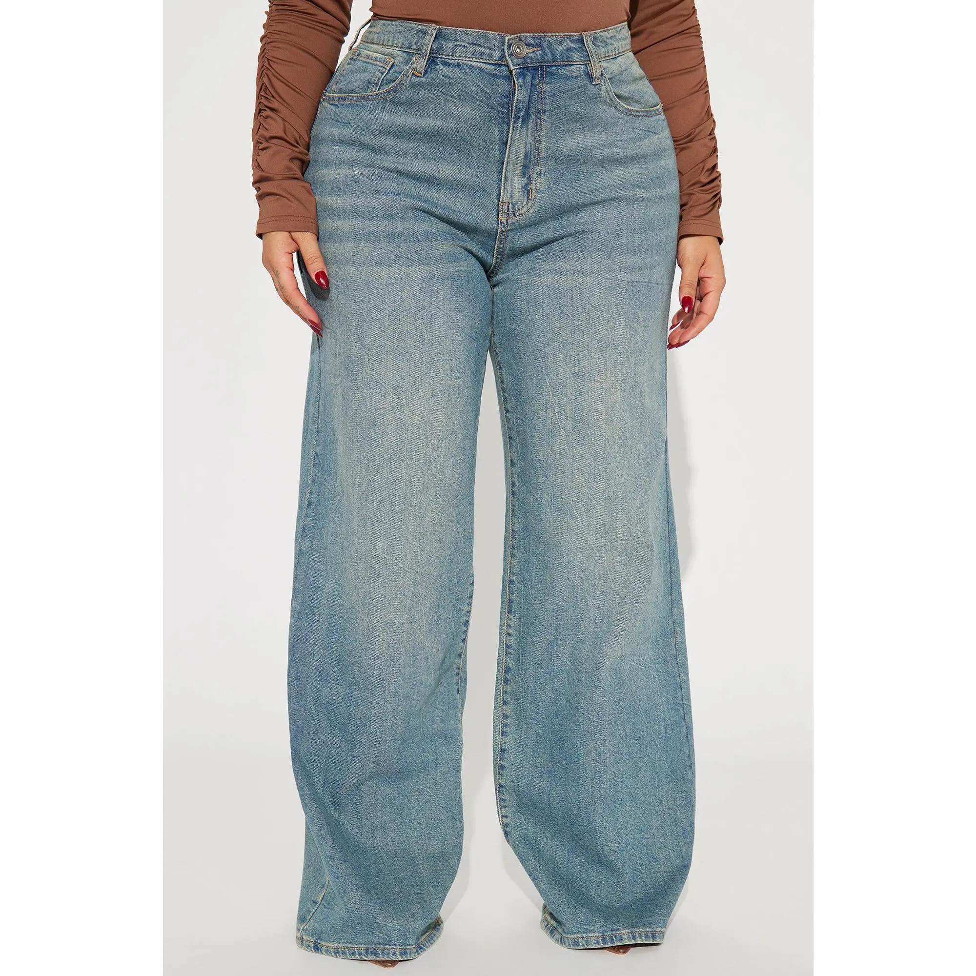 I got these as a size 18 plus, I am 5’5 and around 160lbs (50 inch hips) and they fit me perfect up the hip and thigh not leaving a super huge gap. But… they are ridiculously long on me, I have at least 5 inches of extra length. But very cute good pair of jeans :-)