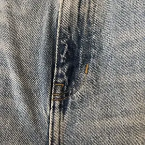 Interesting dark blue wash near the zipper. It makes it look like someone pissed their pants. It fits well, however that stain is not good.