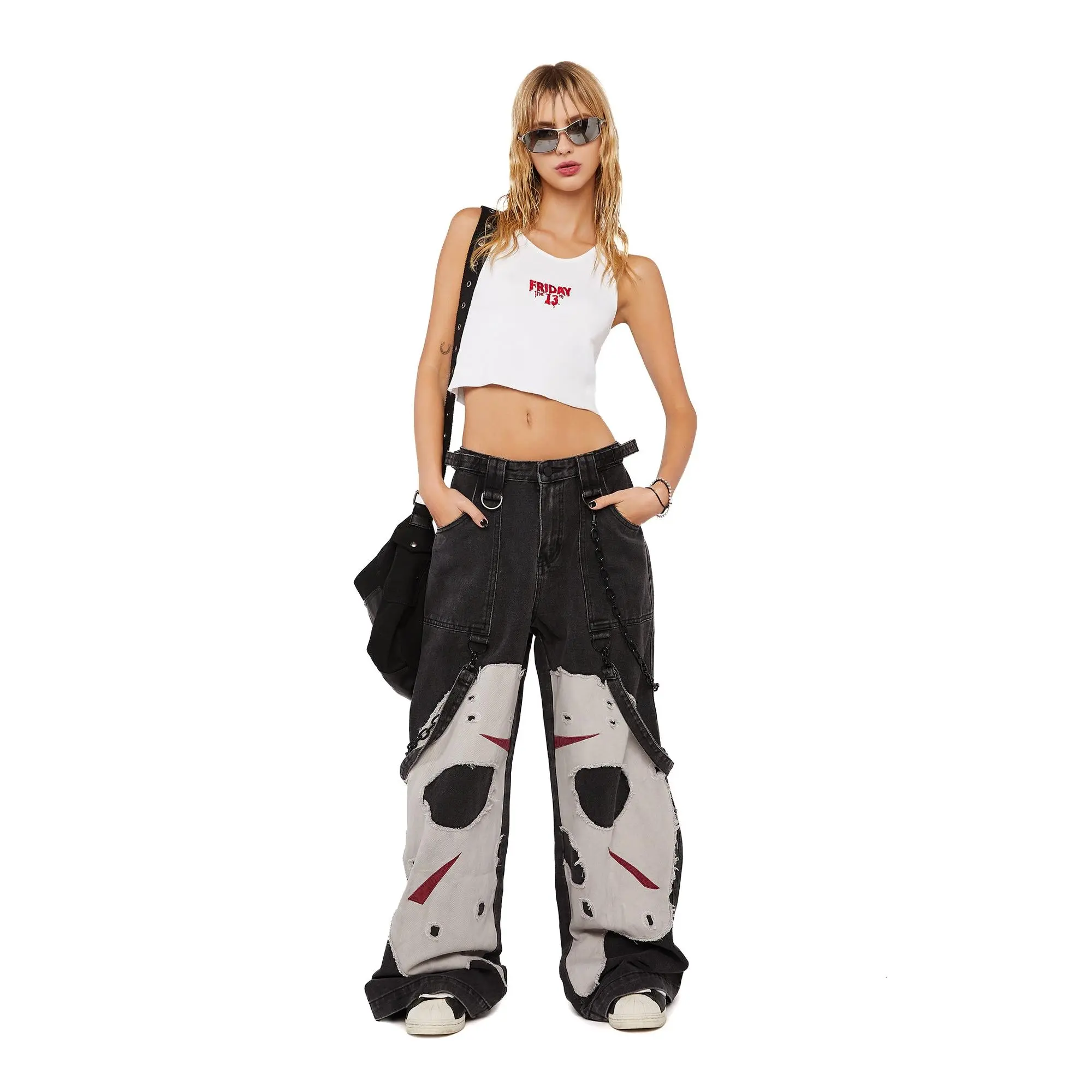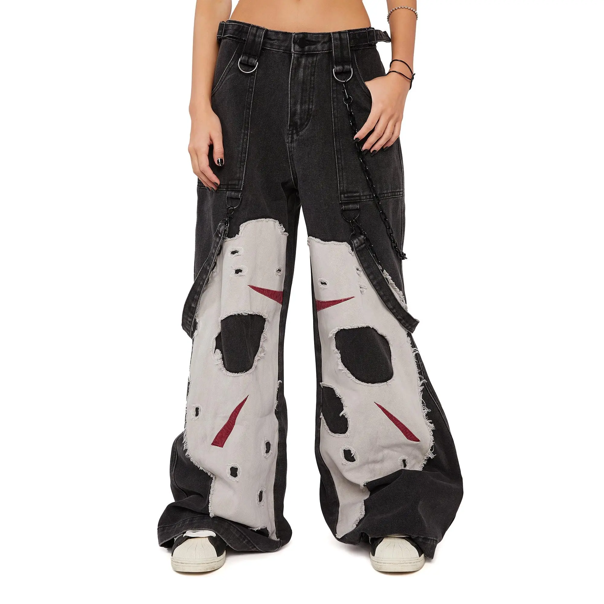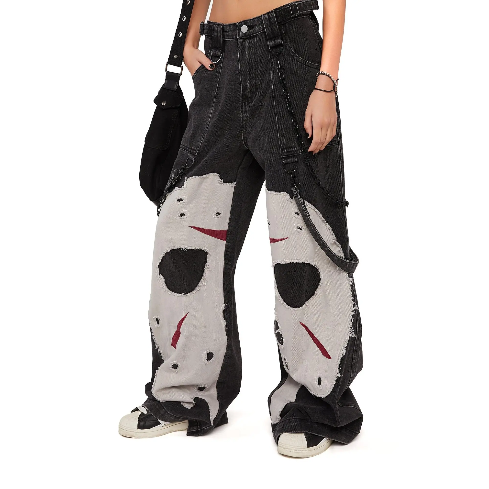 These pants are so cool cisually and I love the additional chains and hanging suspenders that add more dimensionality! Jason and his hockey mask are iconic and I loce how it makes a Slasher Legend a more elevated fashion piece!