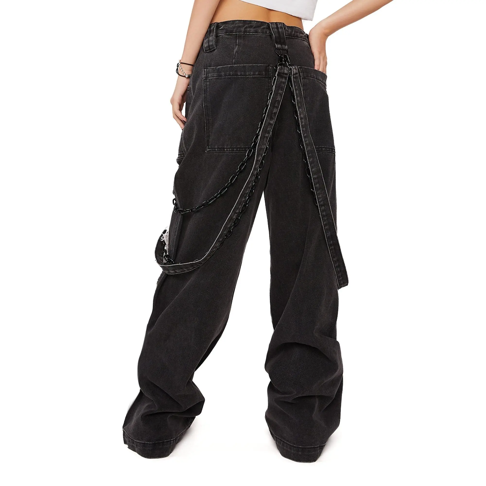 I love these Baggy jeans! I am 5’2” and I ordered an XS. They fit perfectly! They have adjustable straps to tighten and loosen the waist on both sides. The pockets are deep and can fit my phone in the front and back!! Whattt?!! There are straps and chains that you can mix and match or remove completely. Love these jeans! Super spooky and cute!