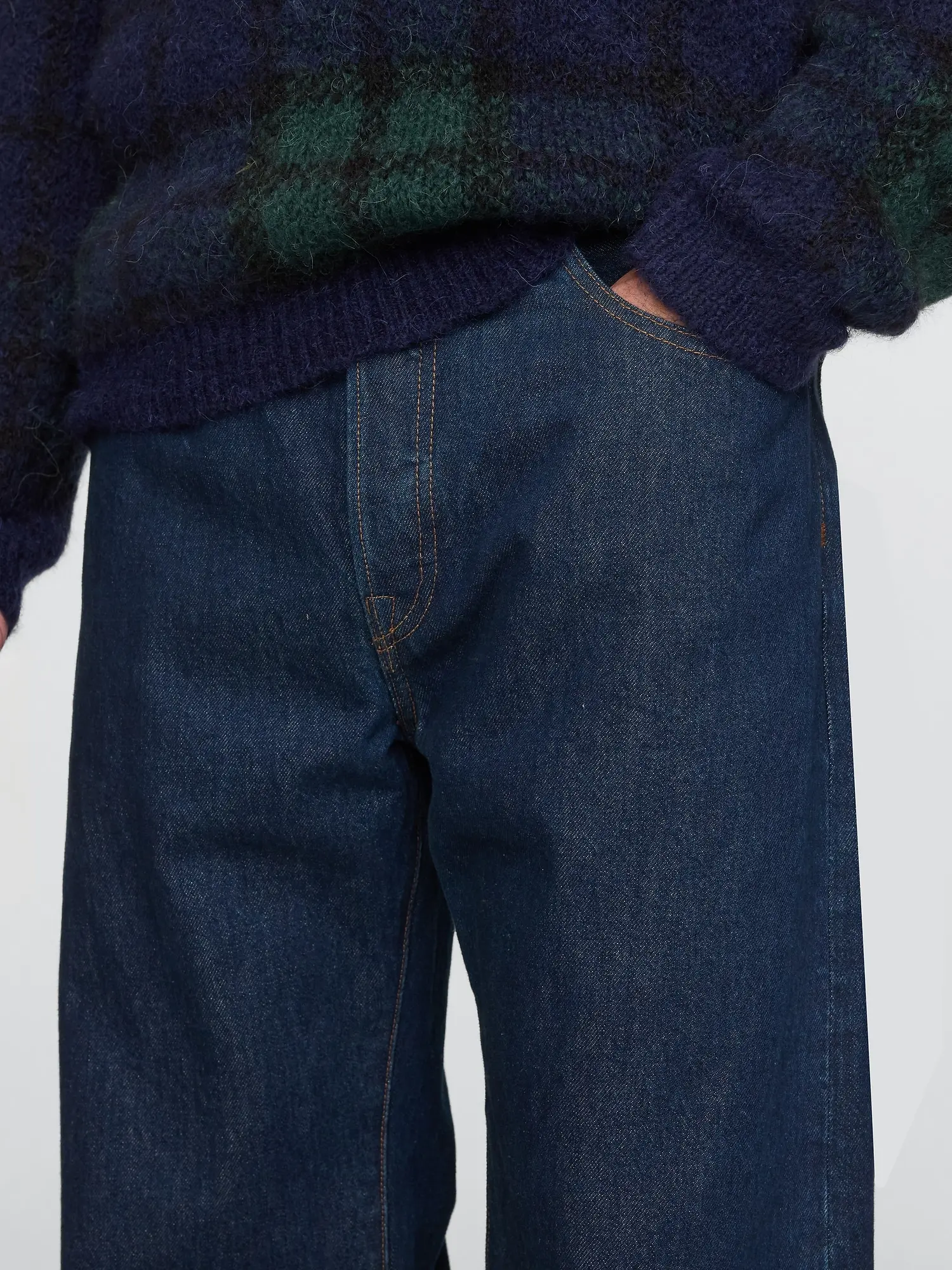 • Look: A five-pocket jean in a dark indigo wash.