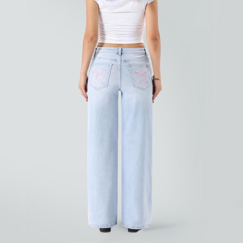 Sweet & Edgy Must-Have👖 ONESO Bow Jeans! Light/dark blue, stretchy BBL lift, plus-size friendly~ BF sale is on fire! #bbljeans  #blackfridaysteal  #SweetEdgyDenim  #stretchywideleg  #plussizefriendly  #ONESO  #onesojeans