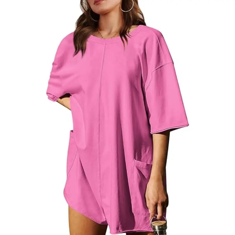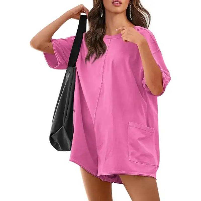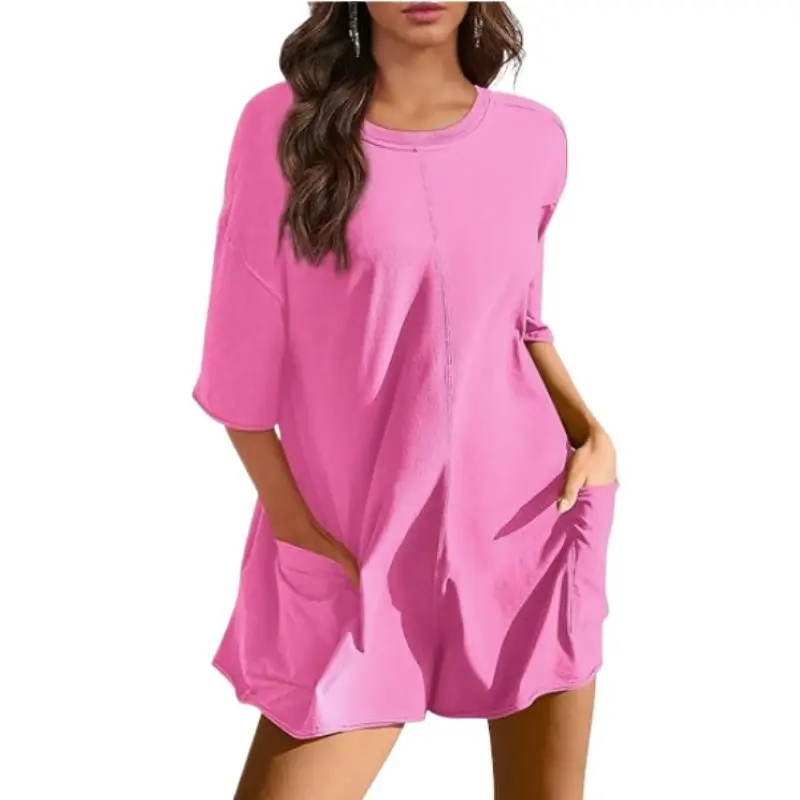 Ā·Feature: short overalls for women, rompers for women short pant, wide leg long harem pants, comfy maternity overalls, two side big pockets. Create a flattering loose comfy effect, soft fabrication with a stretchy feel, scoop neckline, ribbed trim, patch pocket detail at front, V-shaped back, dropped sleeves, raw hemlines