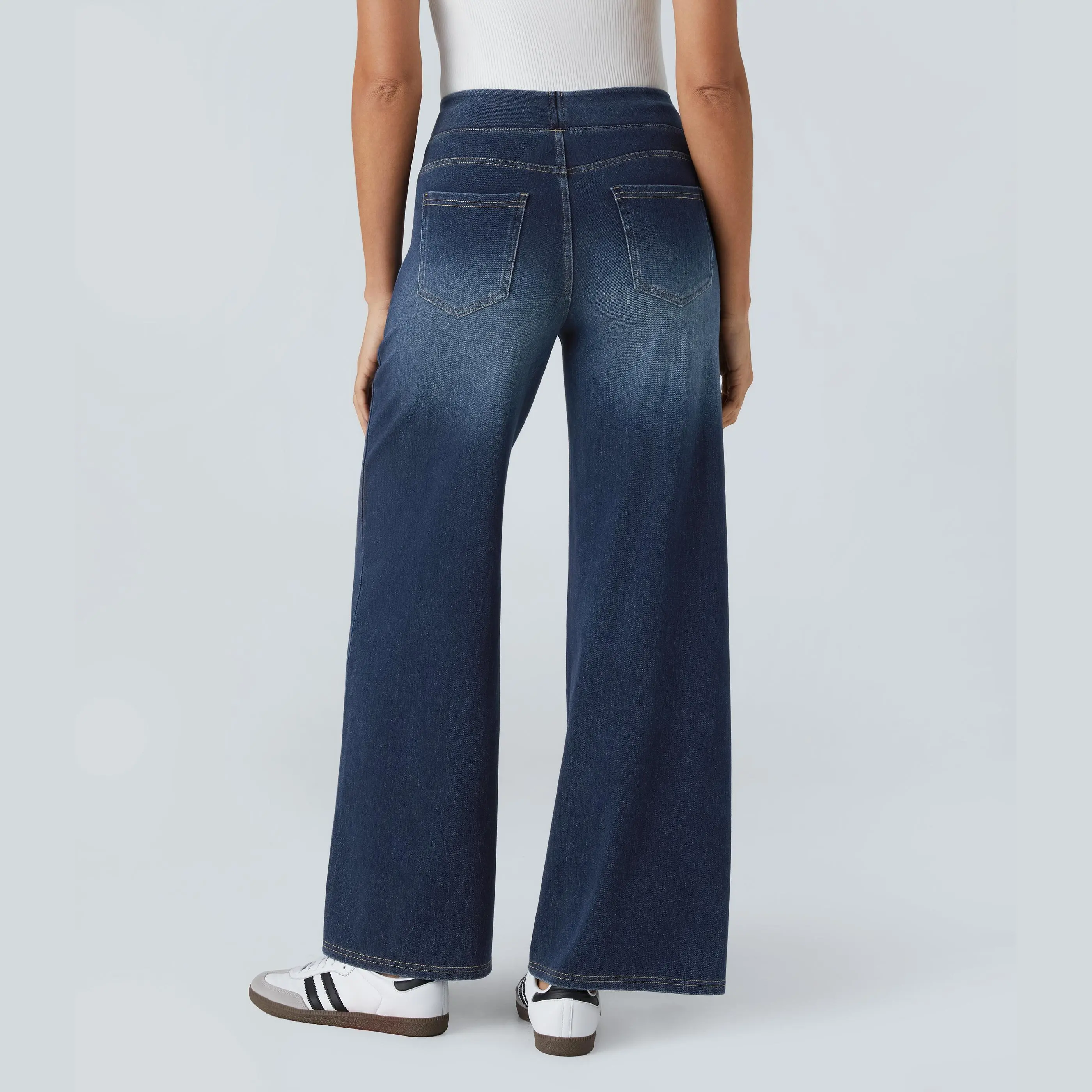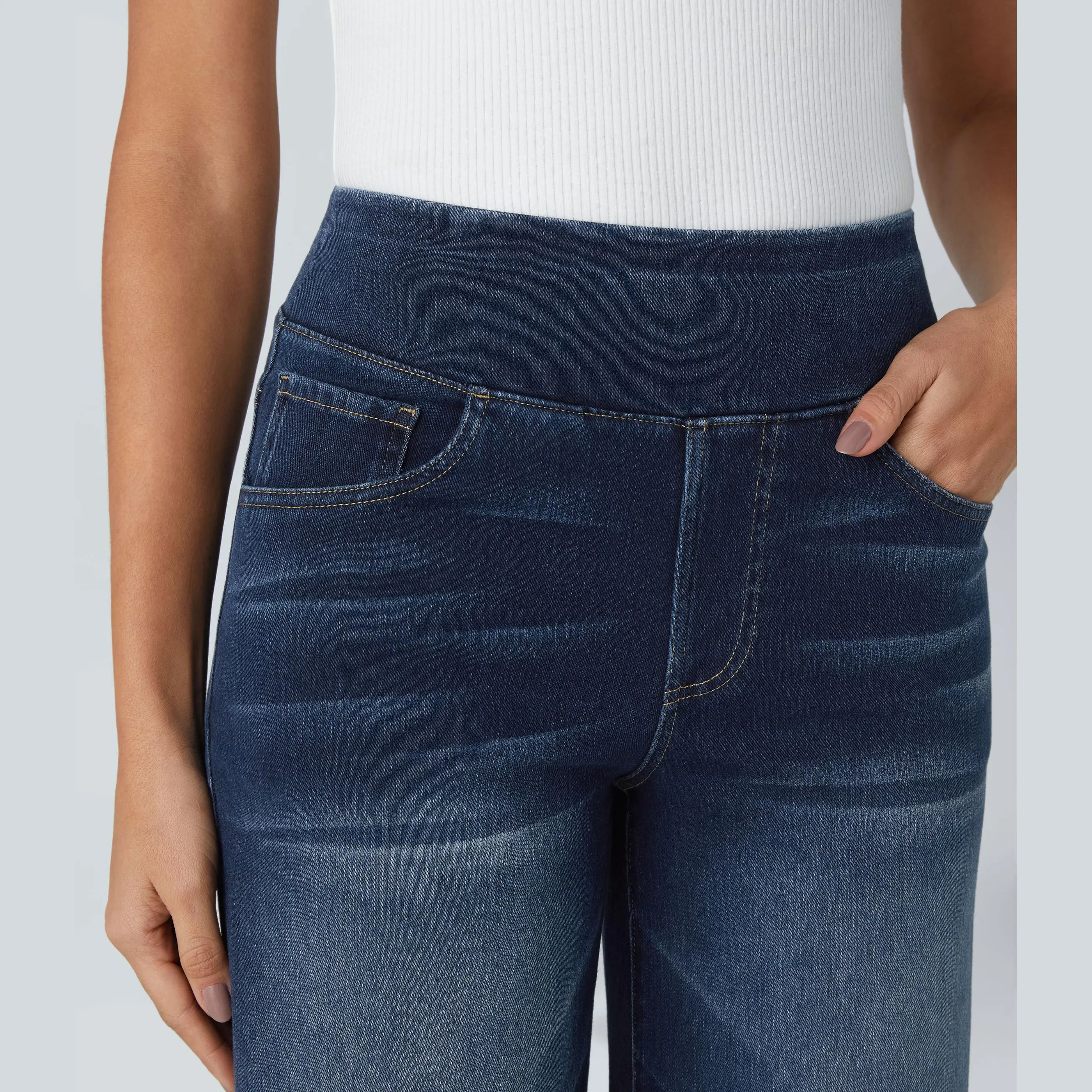 #Halara High Waisted  Wide Leg Washed Stretchy Knit Casual Jeans