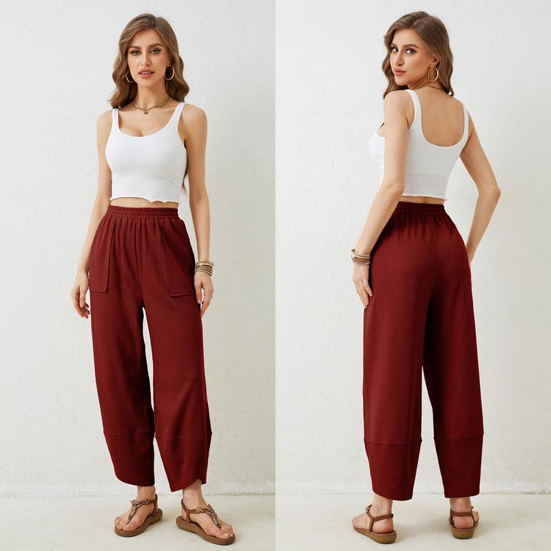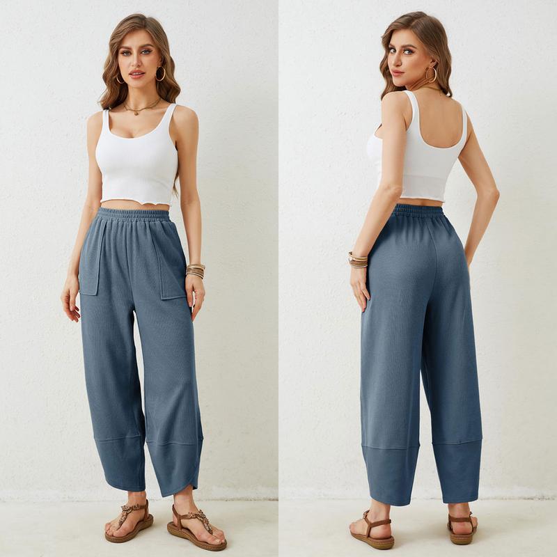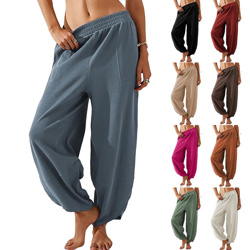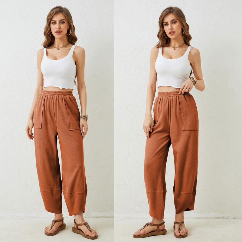 ·Features: Elastic waistband, side seam pockets, and a hem wrap design.These pants offer a relaxed fit, ideal for casual outings.