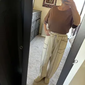 Love these pants! The material and color are so good 🤎 I got a small but the waist felt a little snug. I’ll be returning for a medium. For reference, I’m 5’5”, 132 lbs.