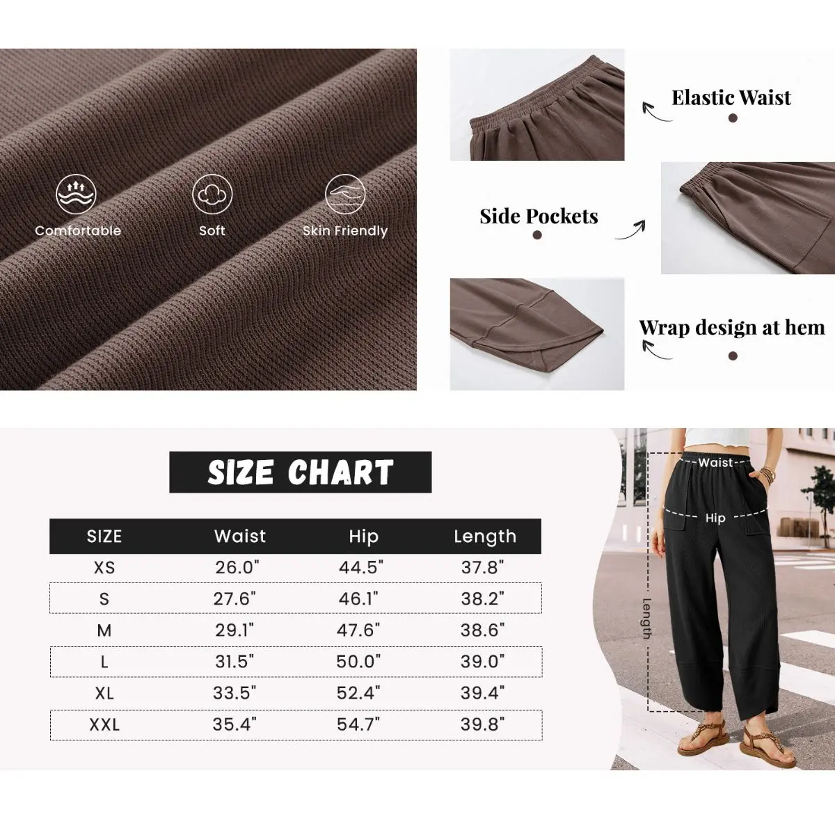 ·Stylish Wrap Hem: Unique wrap design at the ankle adds a flowy, relaxed silhouette and subtle movement to your look.