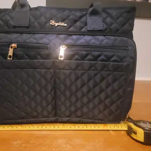 The bag is great appears to be good quality and has lots of space and the color is nice. My only complaint is that I thought it would be wider across the front. Measurement says 16.5" but it's more like 14" but otherwise I like it a lot.