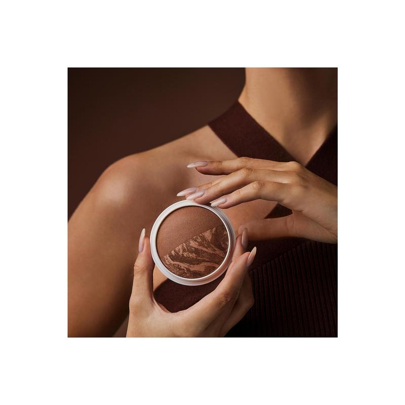 ·Swipe on sunkissed skin to awaken a bronzed and blurred complexion in seconds with this baked bronzer and marble glow duet