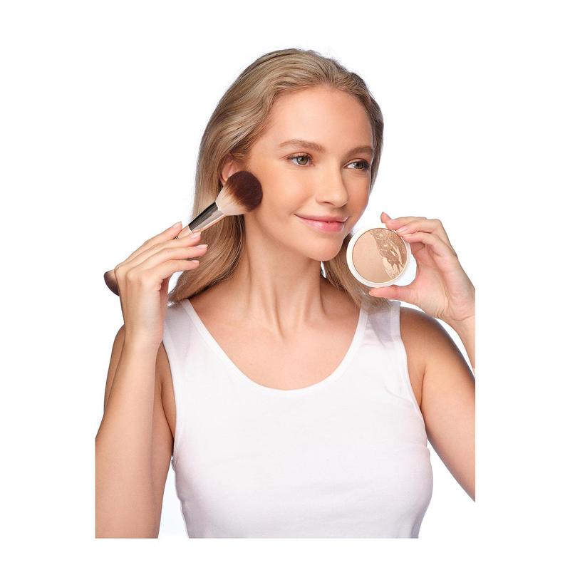 ·Swipe on sunkissed skin to awaken a bronzed and blurred complexion in seconds with this baked bronzer and marble glow duet
