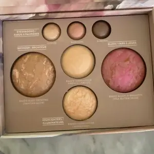 All the baked beauty essentials you need to complete your face in one easy-to-use palette. This set includes a blush, a bronzer, three eyeshadows, and two baked highlighters. Perfect for mature skin, the marbleized pigments ensure easy shade matching. Start with your favorite foundation and mascara for a flawless look.