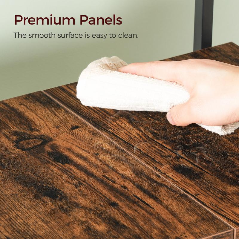 ·Retro Industrial Style: Combining rustic brown panels with a black metal frame, the microwave stand exudes timeless industrial charm. The understated elegance easily blends into modern kitchens, adding unique character and artisanal flair to your baking space
