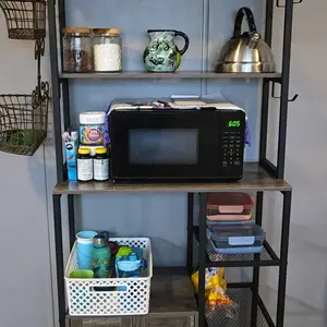 ·【Simple but Classic Industrial Kitchen Storage Rack】 What happens when classic black metal meets rustic brown wood board? Raybee industrial kitchen shelf is the best answer, place this utility rack with hutch in any home scenes and it will naturally fit in.