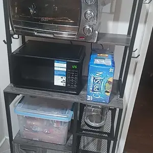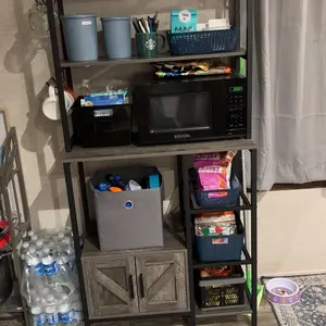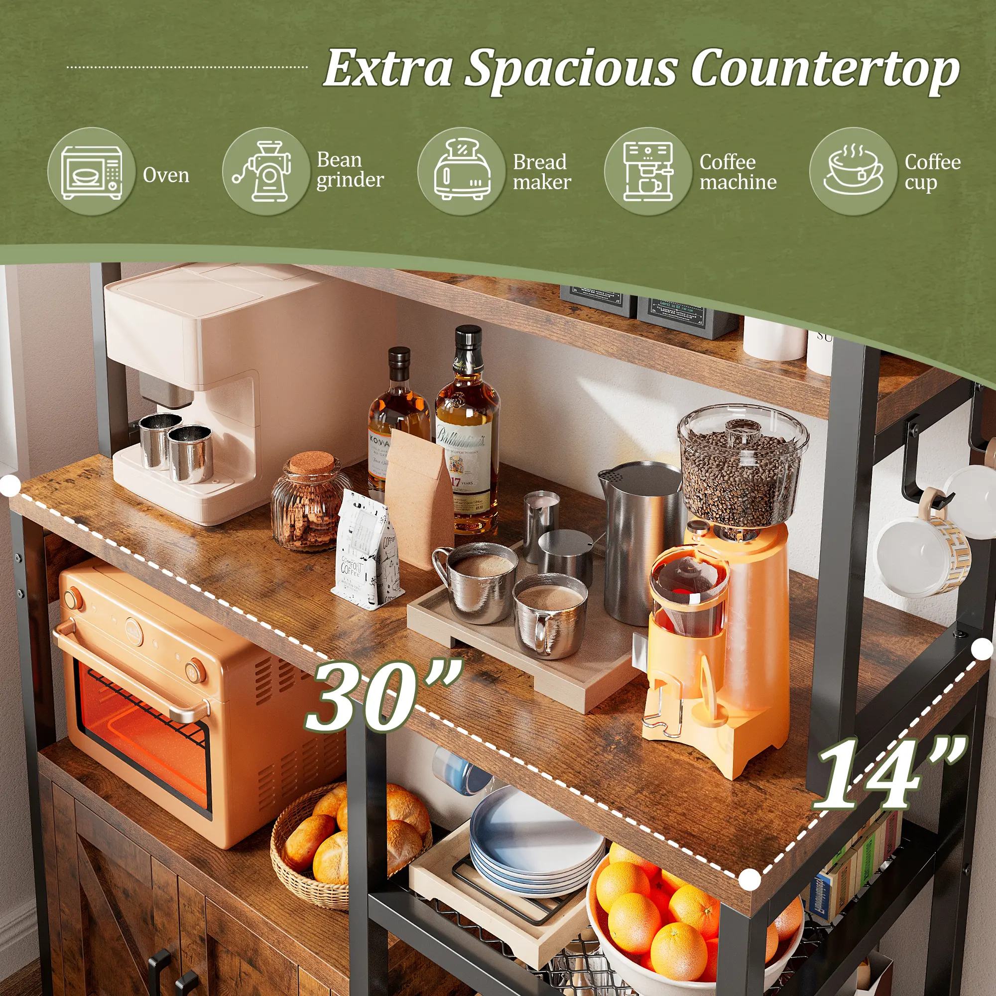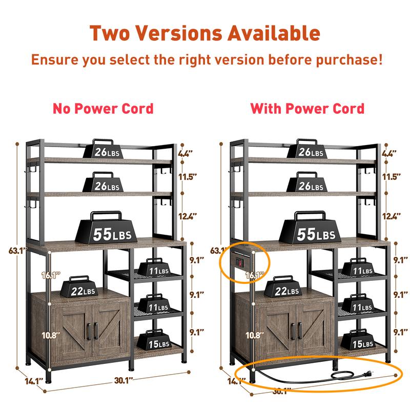 ·【Sturdy Kitchen Hutch with Storage Cabinet Build to Last】 Combine well-manufactured metal frame with solid wood boards, this bakers rack with storage serves for years without wobbling. No worry about load capacity as this industrial bakers rack bears max 230 lbs.
