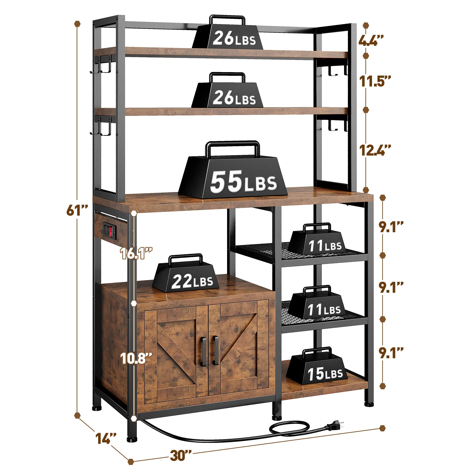 ·【Large Kitchen Bakers Rack with Hutch Provides Ample Space】 This bakers rack with storage sizes 29.6''W x 13.9''D x 63''H, with 1 big wooden board, 2 tier spice rack, 3 layer storing shelf and a deep cabinet, this bakers racks for kitchen and coffee bar center saves your place.