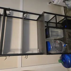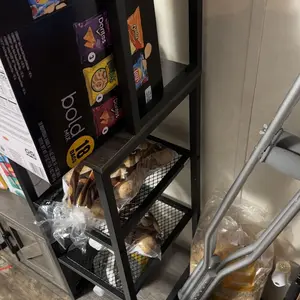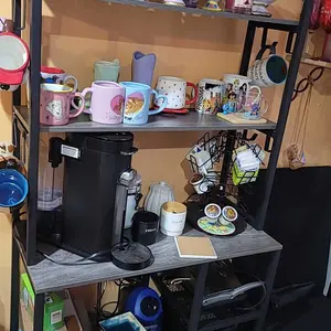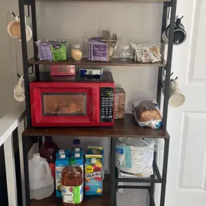 Versatile Bakers Rack This multi-functional rack can be used as a coffee station in the living room, a storage rack in the garage, or a bathroom shelf for wash supplies. It's a space-saving addition to any living space.