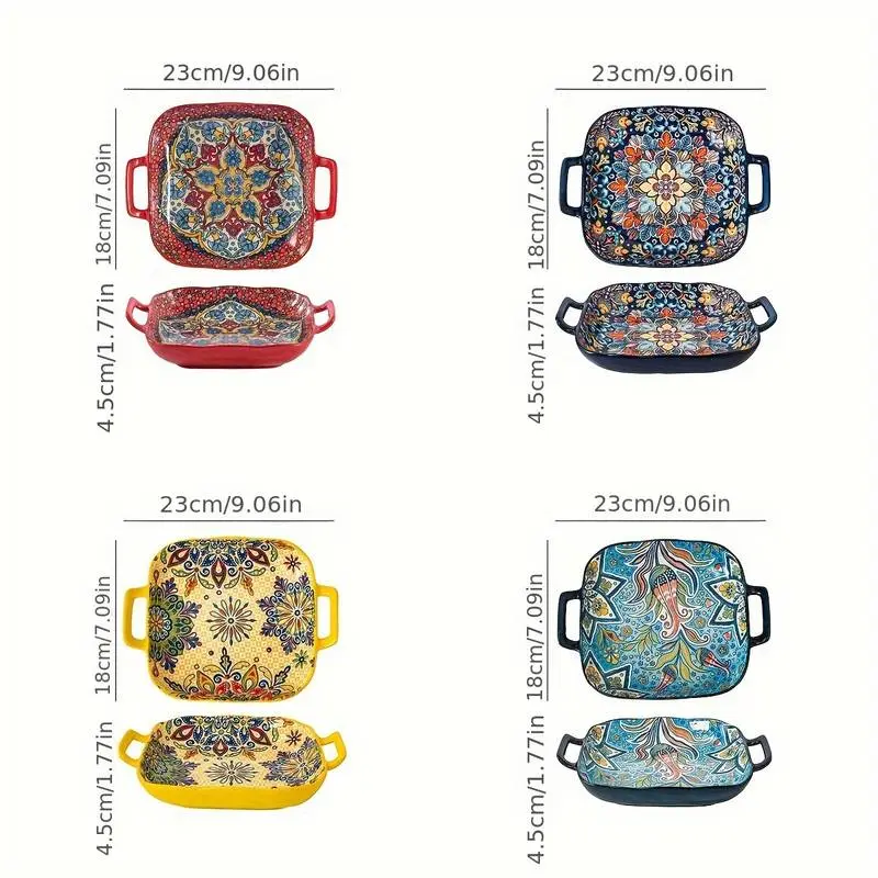 Bohemian Style Ceramic Bakeware Set, 4 Counts/set Square Dual-handle Plates for Baking Fruits Pasta, Oven & Microwave Safe Dishes for Home Use, Salad Serving PlatesBohemian Style Ceramic Bakeware Set, 4 Counts/set Square Dual-handle Plates for Baking Fruits Pasta, Oven & Microwave Safe Dishes for Home Use, Salad Serving PlatesBohemian Style Ceramic Bakeware Set, 4 Counts/set Square Dual-handle Plates for Baking Fruits Pasta, Oven & Microwave Safe Dishes for Home Use, Salad Serving PlatesBohemian Style Ceramic Bakeware Set, 4 Counts/set Square Dual-handle Plates for Baking Fruits Pasta, Oven & Microwave Safe Dishes for Home Use, Salad Serving PlatesBohemian Style Ceramic Bakeware Set, 4 Counts/set Square Dual-handle Plates for Baking Fruits Pasta, Oven & Microwave Safe Dishes for Home Use, Salad Serving PlatesBohemian Style Ceramic Bakeware Set, 4 Counts/set Square Dual-handle Plates for Baking Fruits Pasta, Oven & Microwave Safe Dishes for Home Use, Salad Serving Plates