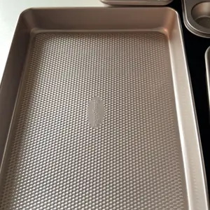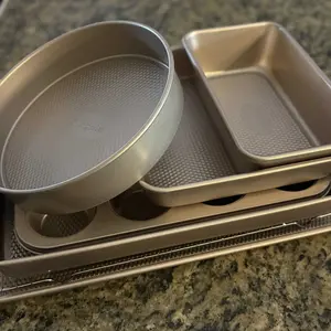 Best nonstick bake set ever. I love everything about this bake set. I have bought everyone in my family a set for Christmas. They come well packaged. I love the diamond texture on them. It really helps. Your food will just slide off and you don’t have to put any oil on these. These are a must have!