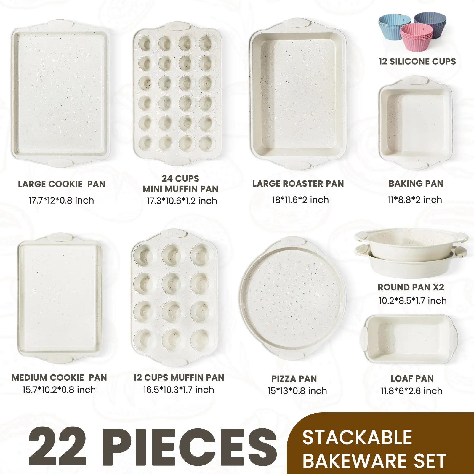 ·VERSATILE 22-PIECE SET: Includes various baking pans for roasting, baking, and more, catering to a wide range of recipes and culinary needs.