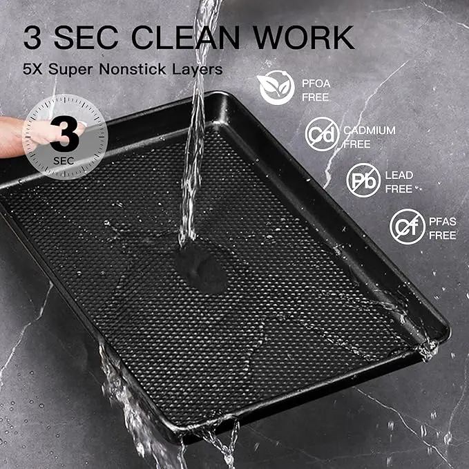 ·INGENUITY DIAMOND TEXTURE - The cookie sheet pan set has a diamond texture on the base increases its non-stick properties and ensures even and quick heat airflow to the cookie, which makes the cookies consistently baked without any over or undercooked parts.
