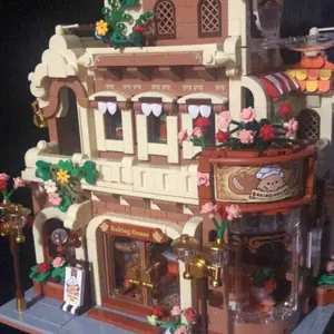On a sunny afternoon, step into this cozy bakery café building block house, order a rich cup of coffee and a freshly baked soft bread.