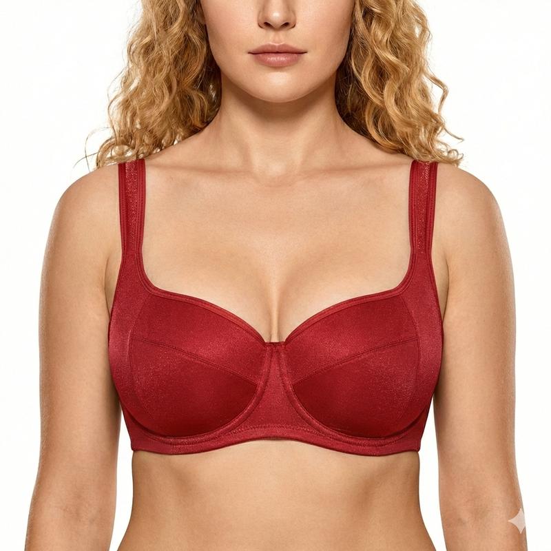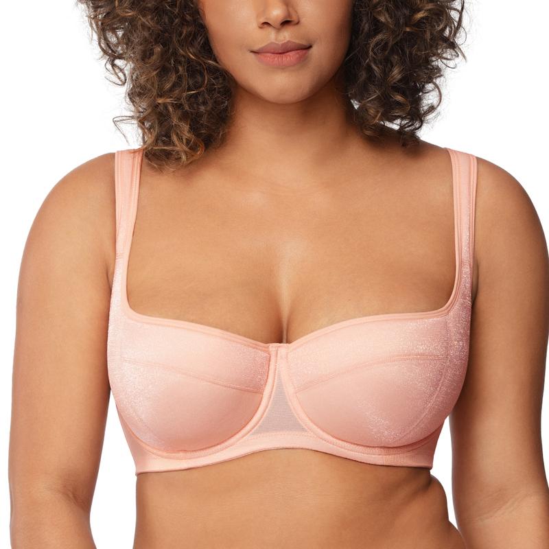 5. HSIA Starry Night Plus Size Glass-Shimmer Fabric Mesh 4mm Lightly Padded Wide Straps Lifting Support Underwire Bra High Side Coverage Natural Push Up Effect Sexy Demi Low Cut T Seam Structure