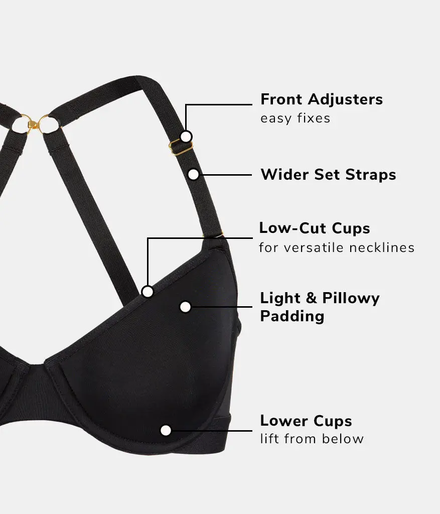 This bra is my new all time favorite. It's so comfortable & breathable. It's supportive, but still feels light. Keeps the nipples under control without feeling like I'm drowning in padding. And I especially love the silkier band on this bra (compared to the mesh on the everyday t-shirt bra). Buying more right after writing this review!
