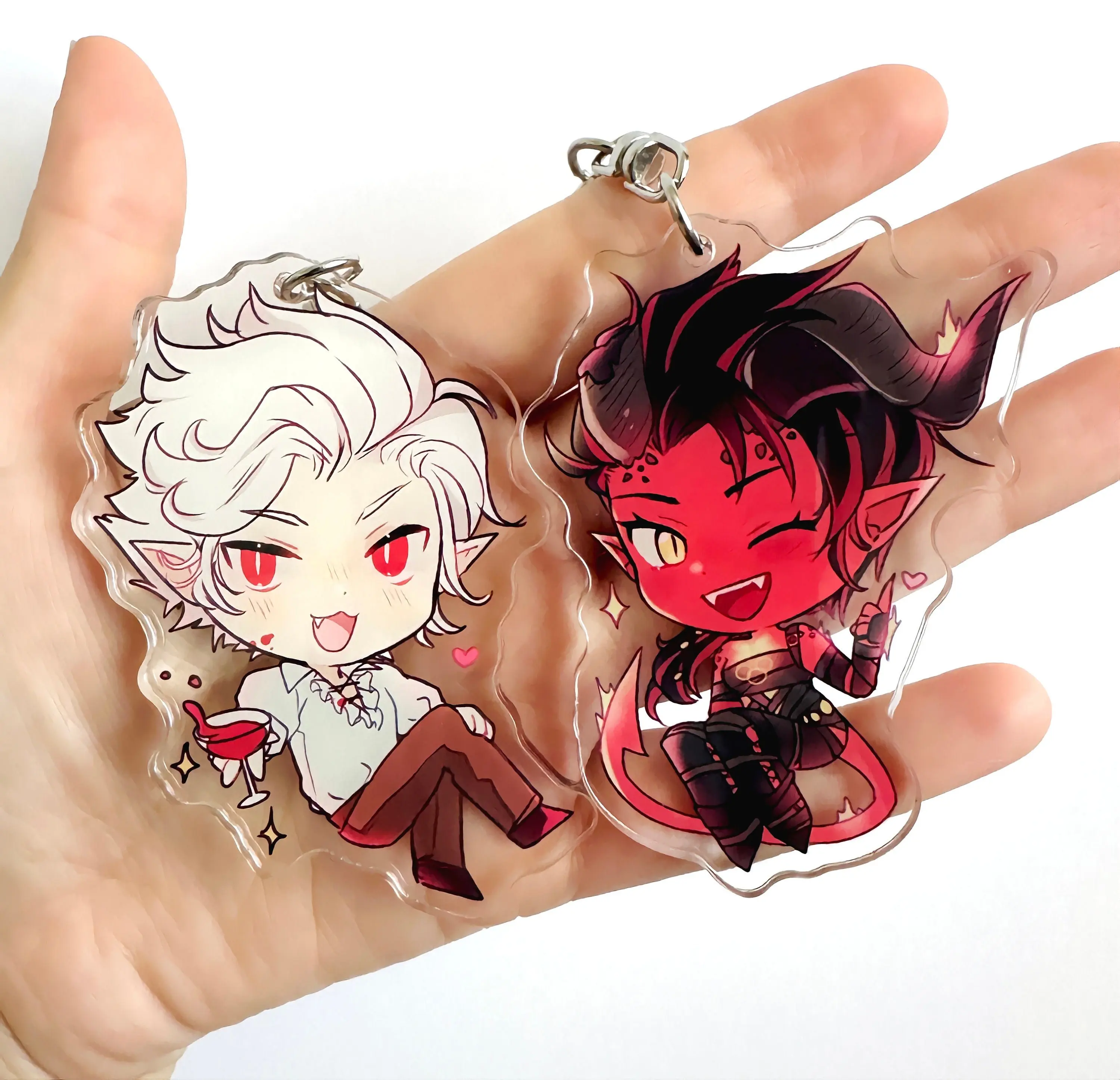 Available in three sizes: 2x2, 3x3, and 3.5x3.5 inches, these keychains complement your unique style. Crafted from acrylic, they offer striking visual appeal and durability. The sturdy keyring ensures secure attachment, keeping your keys organized.
