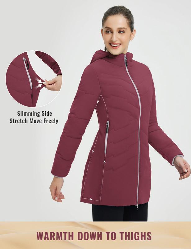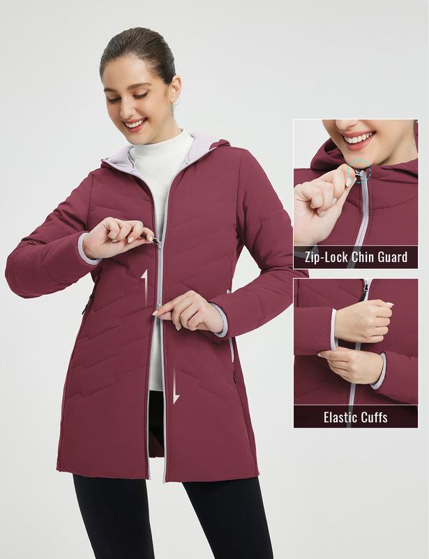 Stretch Panels & Two-Way Zipper: This long puffer jackets made with side panels with high-stretch knitted fabric and a dual-way zipper system. While running, you can effortlessly unzip the lower section – maintaining core warmth while allowing full freedom of movement, achieving perfect harmony between insulation and flexibility.