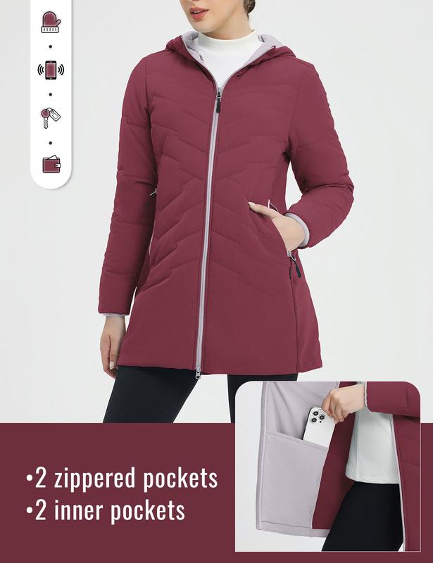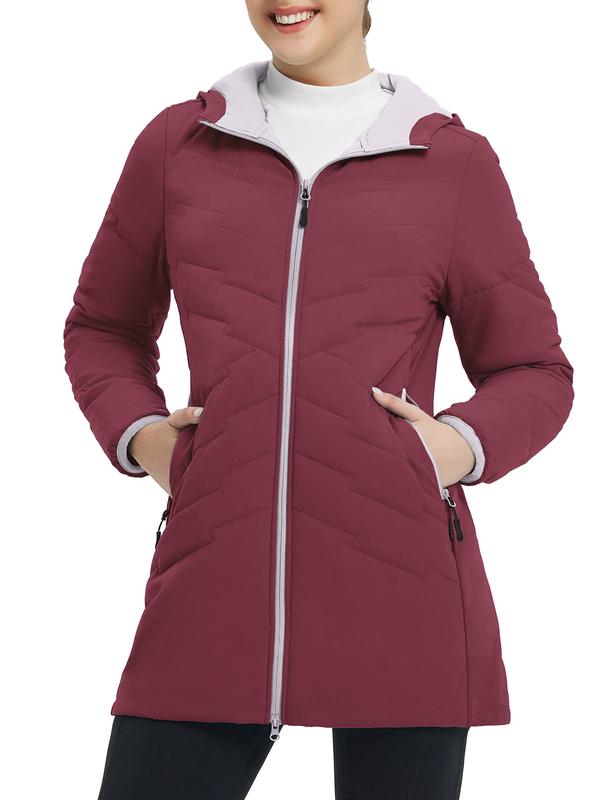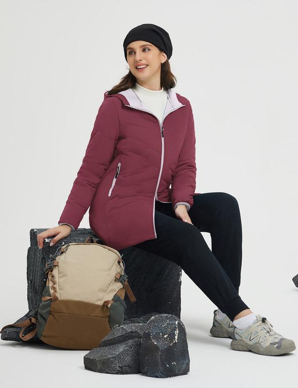 Multi-Occasion: This women's fleece-lined lightweight quilting puffer jacket adds shape without bulk, with an extra windproof hood, perfect for outdoor adventures including hiking, running and cycling, as well as travel, urban commutes, workouts and casual wear.