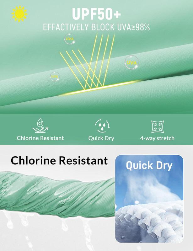 ·Quick Dry, Chlorine Resistant & UPF 50+: Made of lightweight, quick-drying fabric that provides sun protection and chlorine resistance.