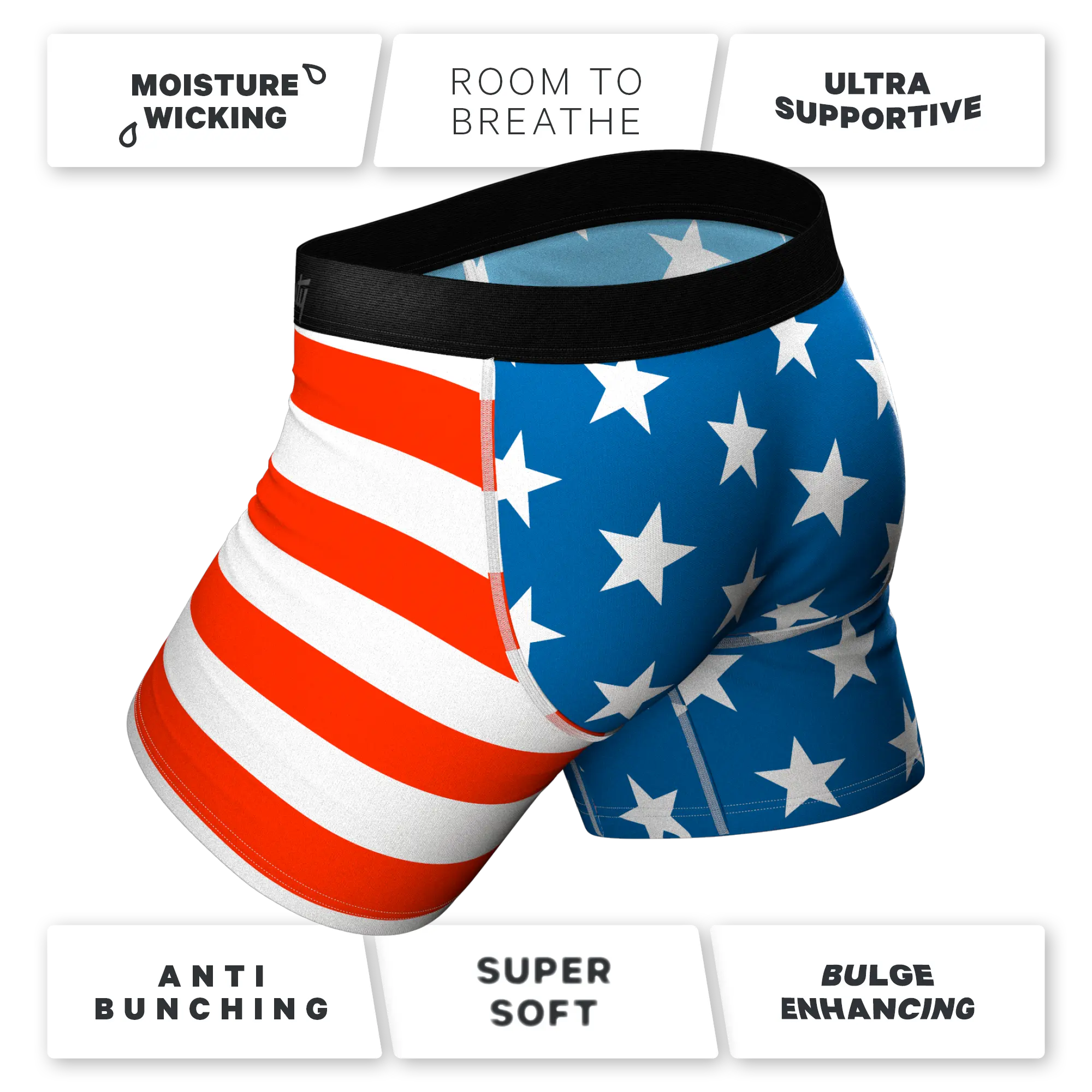 Calls these his "taste the freedom" undies. As always, they are good quality and soft, and he loves his "ball pouch." They did take forever to arrive though (these arrived a week before his next pair "shipped", so hoping his next pair doesn't take so long to get here to Iowa.