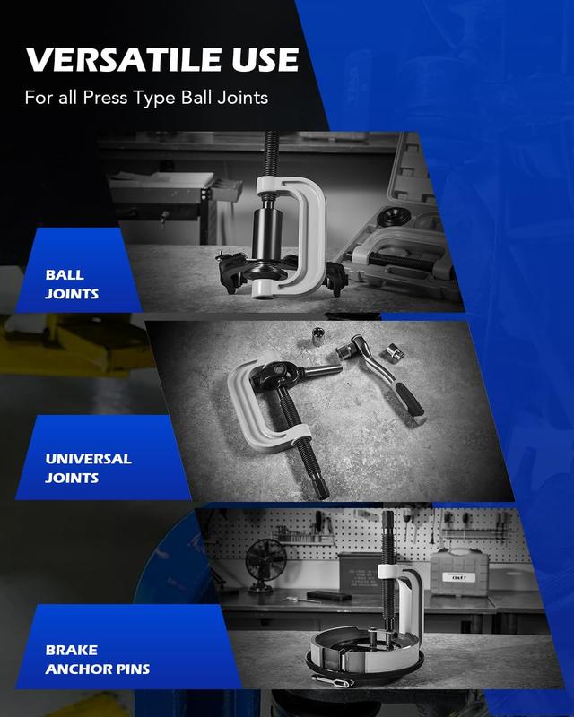 Universal Compatibility: Our ball joint tool kit works with most 2WD and FWD vehicles, including GM, Chrysler, Ford, Jeep, Dodge, and more, thanks to its versatile receiving tubes and adapters.