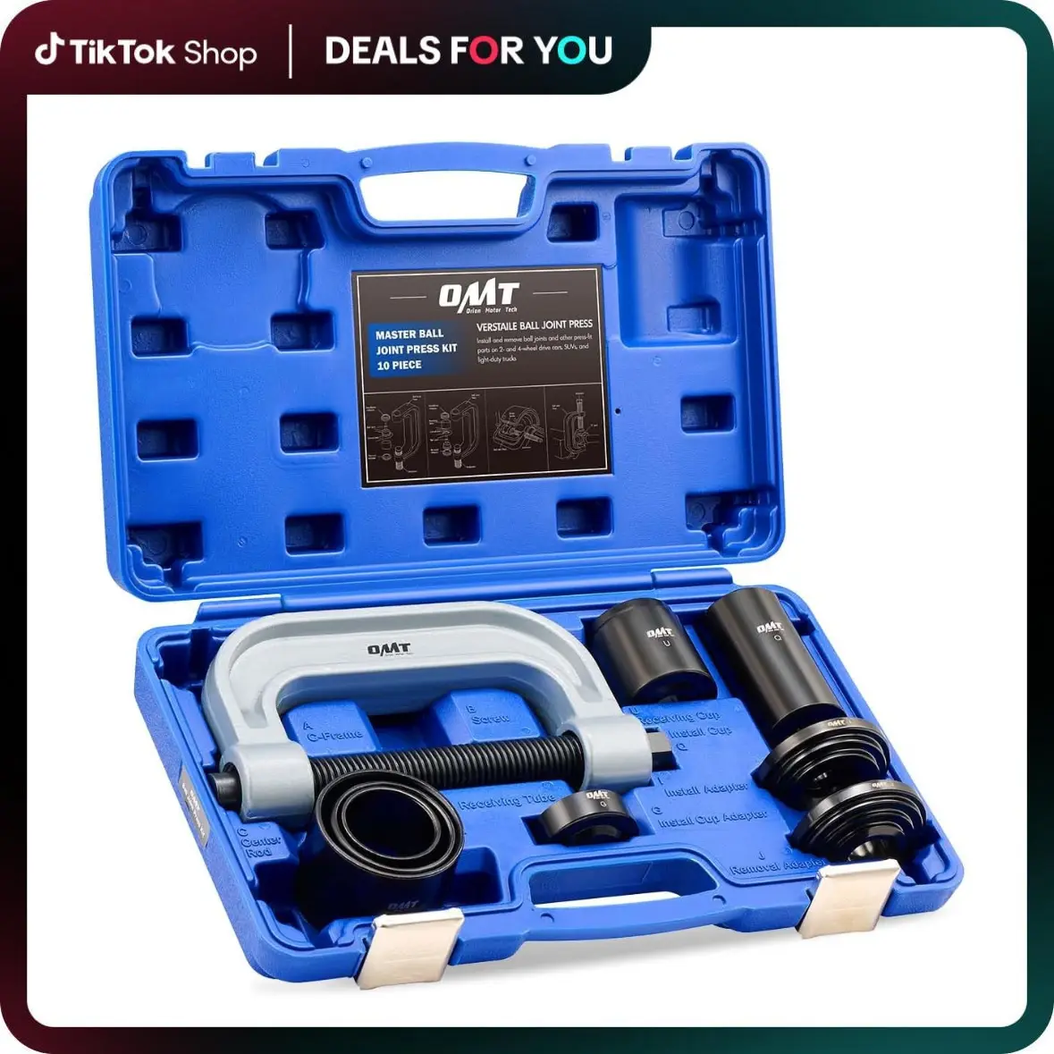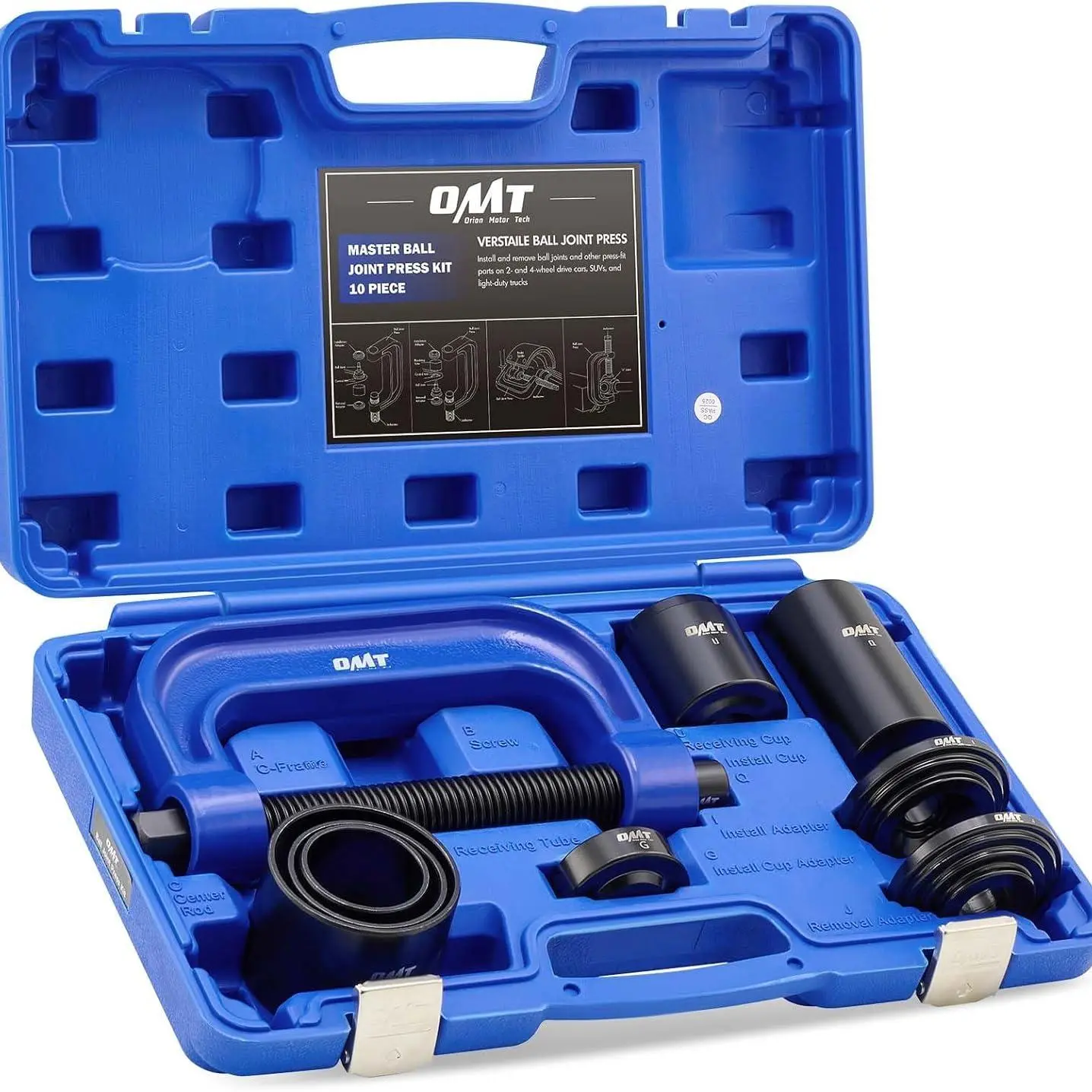Utilice el juego de prensa de rótulas de Orion Motor Tech, herramienta para rótulas / herramienta de extracción de bujes con adaptador para tracción en las cuatro ruedas (4WD), para extraer sin esfuerzo las piezas ajustadas por presión, incluidas rótulas, juntas universales, pasadores de anclaje de freno y más, en la mayoría de los vehículos de tracción en dos ruedas (2WD) y tracción en cuatro ruedas (4WD), sin necesidad de desmontar el brazo de control del vehículo.