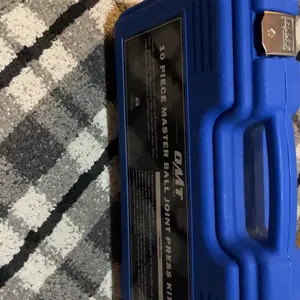 Ball joint press / bushing removal tool kit is enclosed inside a heavy-duty 11” x 3” x 15” (27.9 cm x 7.6 cm x 38.1 cm) plastic blow-molded carrying case with handle for easy storage, safe storage, and quick organization.